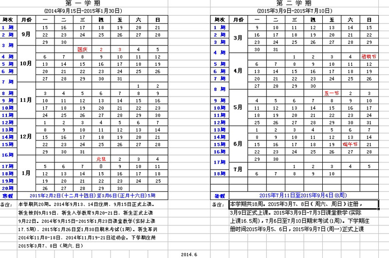 2014-2015學年教學周歷