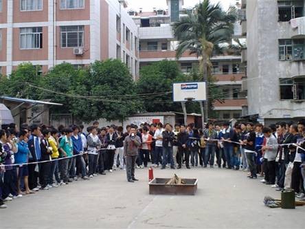 隨著呼救聲的響起,只見煙霧從窗口冒出,組織人員安排現(xiàn)場同學以宿舍為單位,井然有序的用濕毛巾捂住口鼻從樓梯撤下聚集到安全場所。在進行兩次演練后,保衛(wèi)科老師為同學們講述了關(guān)于消防的知識,在大火中如何逃生和使用滅火器。并在空地上進行了滅火的實際操作演練。