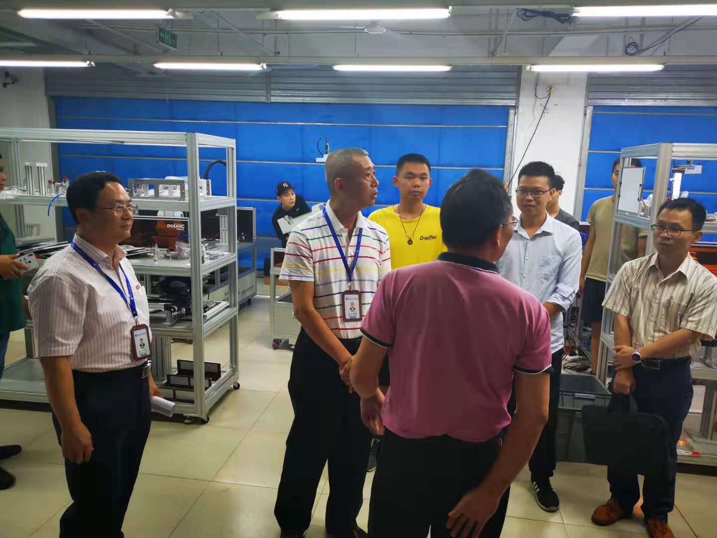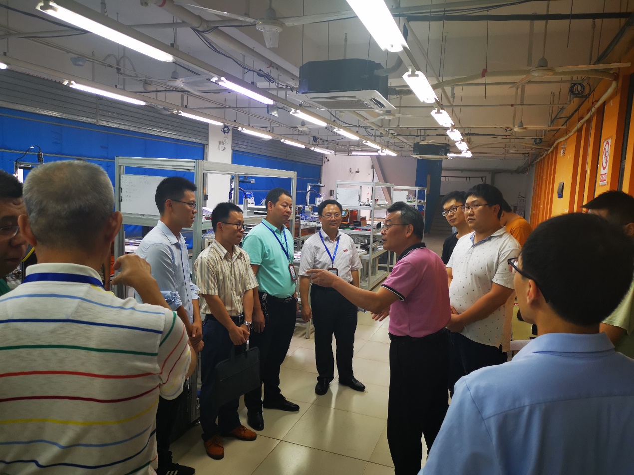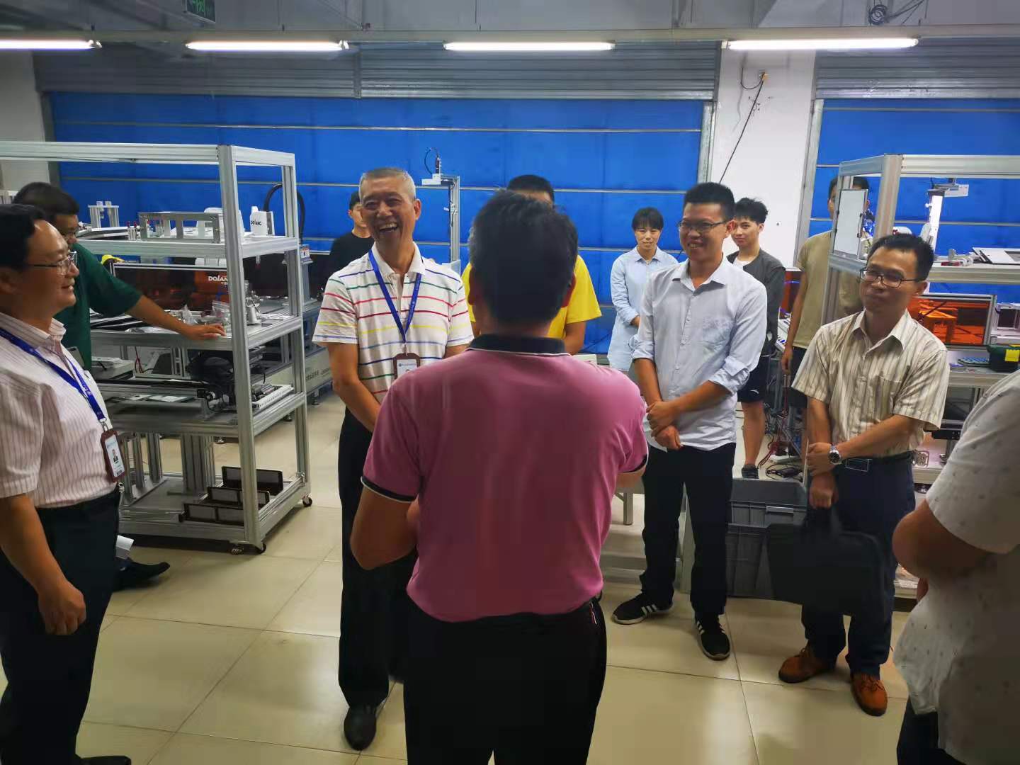 2019年10月14日下午,福建省工業(yè)和信息化廳陳庚處長、顏真楠主任一行蒞臨我院指導(dǎo)第三屆全國工業(yè)機(jī)器人技術(shù)應(yīng)用技能大賽福建代表隊(duì)集訓(xùn)。學(xué)院黨委書記張海明、院長陳錦輝與陳庚處長一同來到集訓(xùn)現(xiàn)場檢查訓(xùn)練工作,詳細(xì)了解了集訓(xùn)工作的計劃、具體進(jìn)度安排和備賽情況,逐一查看了設(shè)備狀況、程序調(diào)試、機(jī)器人試運(yùn)行、安裝與維護(hù)等備賽環(huán)節(jié),與教練指導(dǎo)團(tuán)隊(duì)、集訓(xùn)隊(duì)員進(jìn)行了親切交談。在聽取了全面匯報后,陳庚處長對本次集訓(xùn)工作給予了充分肯定,要求教練團(tuán)隊(duì)再接再厲,以踏石留痕、久久為功的精神,全力以赴做好競賽準(zhǔn)備工作;勉勵集訓(xùn)隊(duì)員們刻苦訓(xùn)練,練好本領(lǐng),賽出風(fēng)格、賽出水平,為福建代表隊(duì)爭光添彩。張海明書記、陳錦輝院長對本次集訓(xùn)也給予了高度肯定,要求機(jī)械系和實(shí)訓(xùn)中心全方位做好后勤和服務(wù),為福建代表隊(duì)創(chuàng)造優(yōu)良的訓(xùn)練條件和生活保障。