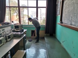 2020年3月23日上午機(jī)械工程系召開教研會議,會上楊開懷主任表示疫情期間雖然無法進(jìn)行實(shí)踐教學(xué),但實(shí)驗(yàn)室應(yīng)該時刻進(jìn)入開學(xué)前的預(yù)備狀態(tài),并要求系實(shí)訓(xùn)中心近期安排部分老師進(jìn)校,對實(shí)驗(yàn)實(shí)訓(xùn)室進(jìn)行開學(xué)前的通風(fēng)、清潔、設(shè)備維護(hù)工作。結(jié)合院實(shí)訓(xùn)中心的工作安排,系實(shí)訓(xùn)中心在3月24日上午組織各實(shí)驗(yàn)室老師到校,對實(shí)驗(yàn)實(shí)訓(xùn)室進(jìn)行安全大巡查。此次工作重點(diǎn)是對各實(shí)驗(yàn)場所進(jìn)行通風(fēng)、除塵、水電門窗檢查、安全和消防巡查及設(shè)備維護(hù),并對發(fā)現(xiàn)的隱患及時進(jìn)行整改。老師們嚴(yán)格根據(jù)實(shí)驗(yàn)室相關(guān)管理細(xì)則,首先對實(shí)驗(yàn)室進(jìn)行開窗通風(fēng),保持室內(nèi)外空氣流通,以防有毒有害氣體留在室內(nèi)對人員造成傷害;再通過開空調(diào)、抽濕機(jī)或開門窗等方式調(diào)整室內(nèi)溫濕度達(dá)到規(guī)定條件;同時對實(shí)驗(yàn)場所進(jìn)行清掃、除塵處理;最后對儀器設(shè)備進(jìn)行開機(jī)試運(yùn)行維護(hù)。