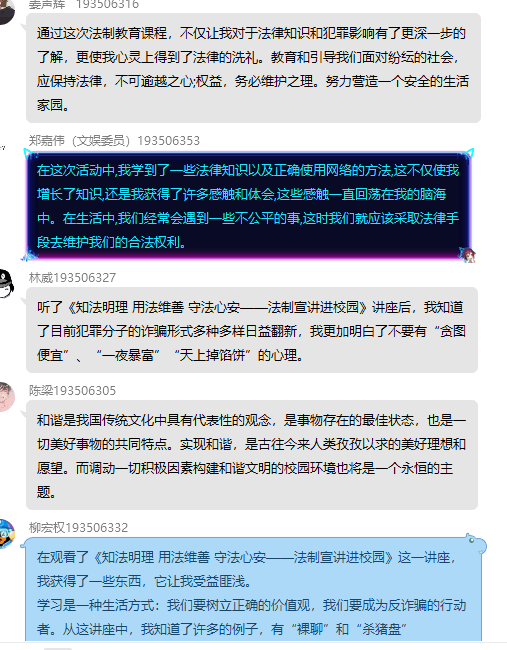 聽(tīng)完劉警官的有趣宣講,同學(xué)們也感觸頗多,收獲了不少法律小知識(shí)。嘿嘿,其中不少同學(xué)就分享了他們的講座心得,讓我們一起來(lái)看看吧!