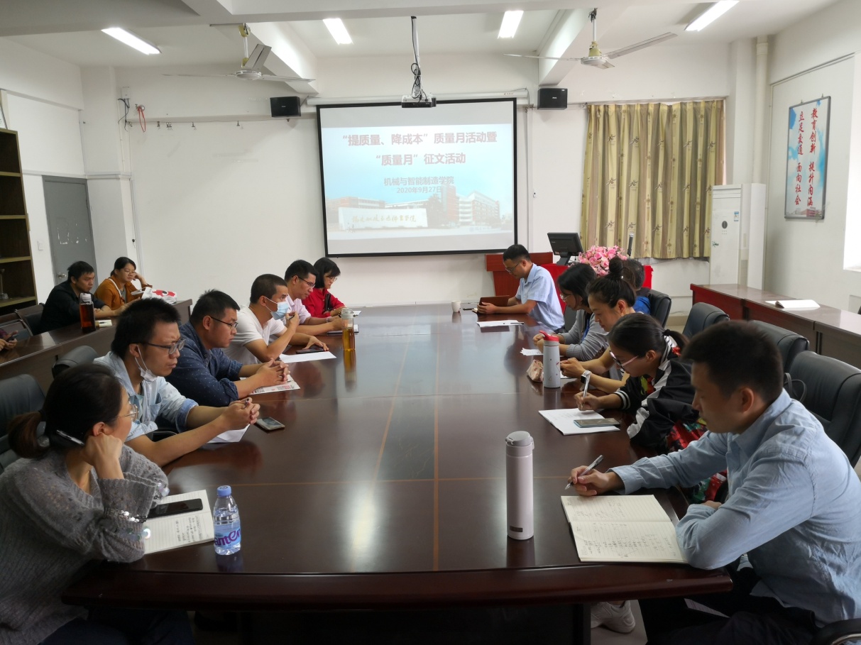 每年9月份是我國的全國質(zhì)量月,2020年全國質(zhì)量月主題是“建設(shè)質(zhì)量強國,決勝全面小康”。每年9月份也是我校的“質(zhì)量月”,機械與智能制造學(xué)院圍繞質(zhì)量月主題開展了系列活動,教師員工的質(zhì)量意識有了很大提高,正朝著一個積極、上進的方向發(fā)展。