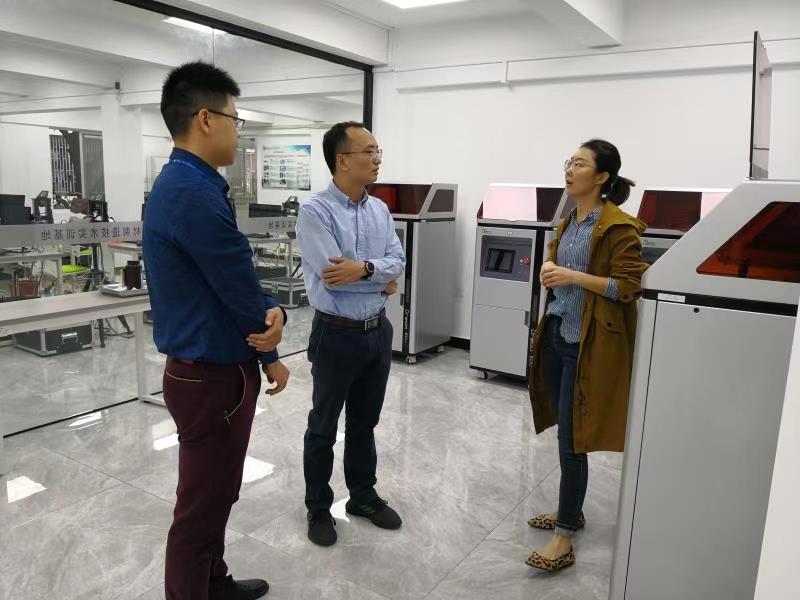 福建幼兒師范高等??茖W(xué)校陳峰校長參觀返校后,立即選派該?,F(xiàn)教中心陳寧華主任、人文系姜平主任帶領(lǐng)相關(guān)專業(yè)教師一行7人于11月23日前來我校參觀學(xué)習(xí),機械與智能制造學(xué)院王水發(fā)副院長陪同,程艷和鐘燕華老師全程講解。主要介紹了增材制造實訓(xùn)基地建設(shè)應(yīng)用情況,就如何激發(fā)學(xué)生對3D打印的興趣,學(xué)生創(chuàng)新意識的培養(yǎng),創(chuàng)造性思維的啟發(fā)進行了深入探討,為福建幼兒師范高等專科學(xué)校擬建相關(guān)實驗室提供了建設(shè)性意見。