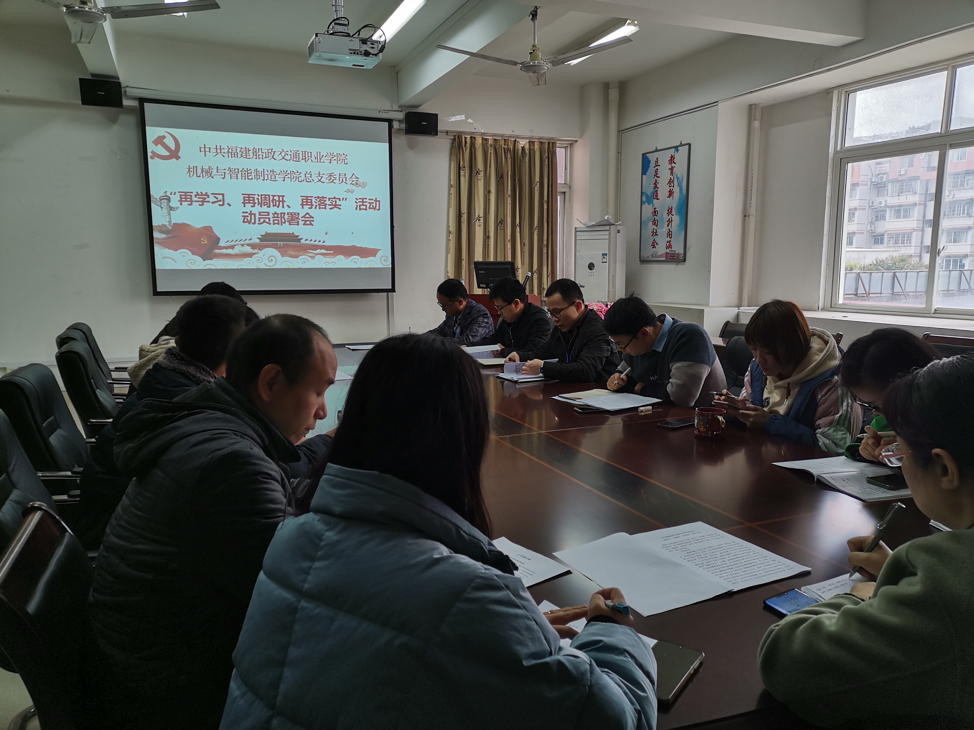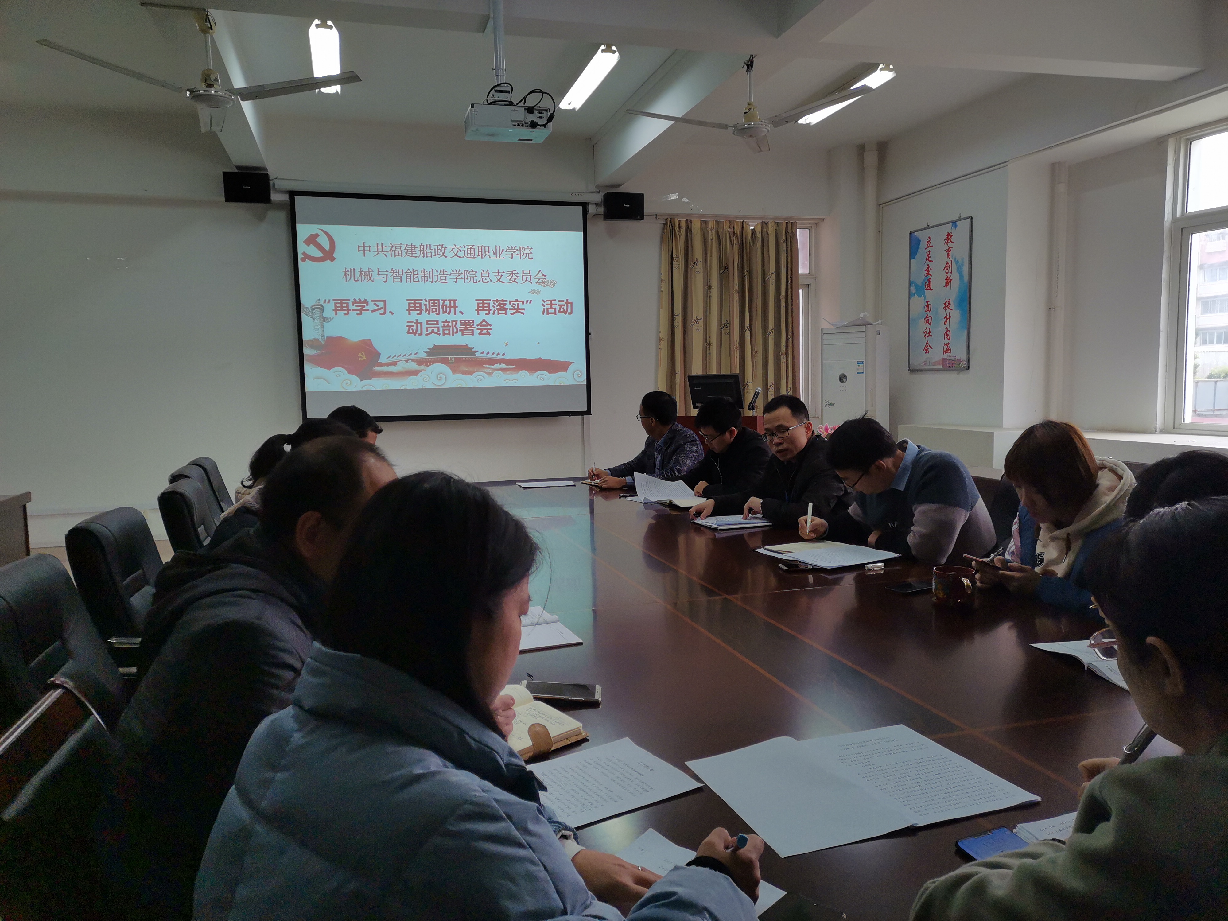 會(huì)議傳達(dá)了省委、省委教育工委、教育廳關(guān)于 、市委“再學(xué)習(xí)、再調(diào)研、再落實(shí)”動(dòng)員部署會(huì)精神和《中共福建船政交通職業(yè)學(xué)院委員會(huì)“再學(xué)習(xí)、再調(diào)研、再落實(shí)”活動(dòng)方案》的通知要求,并結(jié)合機(jī)械與智能制造學(xué)院實(shí)際就落實(shí)好“再學(xué)習(xí)、再調(diào)研、再落實(shí)”活動(dòng)提出貫徹具體意見,研究通過了《中共福建船政交通職業(yè)學(xué)院機(jī)械與智能制造學(xué)院總支委員會(huì)關(guān)于開展“再學(xué)習(xí)、再調(diào)研、再落實(shí)”活動(dòng)的實(shí)施方案》。