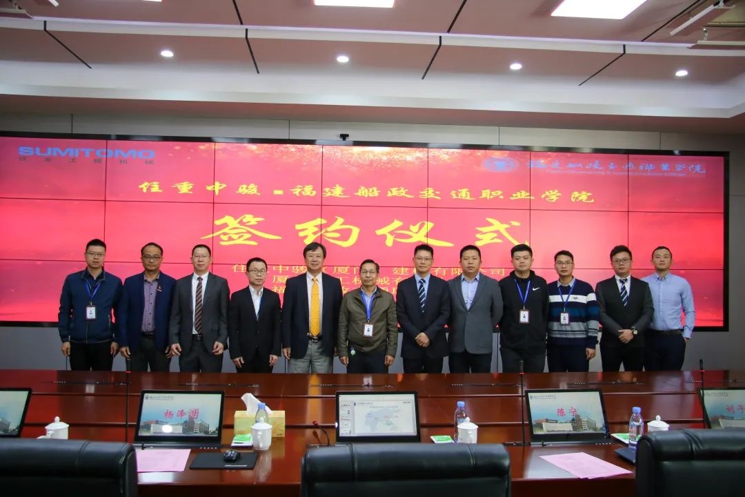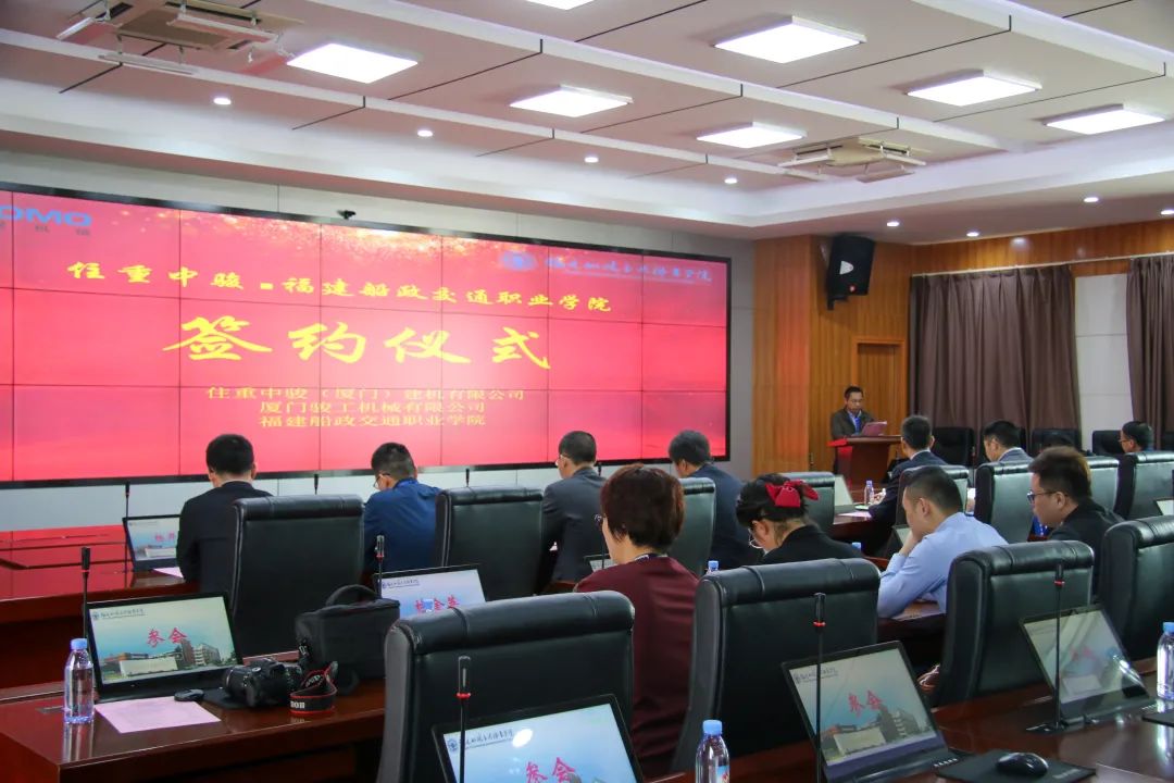 蒞臨本次儀式的企業(yè)領(lǐng)導有住重中駿(廈門)建機有限公司董事總經(jīng)理楊澤湧先生、市場總監(jiān)陳寧先生、高級主任甘周偉先生、營業(yè)經(jīng)理陳澤銳先生;廈門駿工機械有限公司總經(jīng)理陳普天先生、副總經(jīng)理劉子榕先生。學校高度重視本次校企合作簽約儀式,福建船政交通職業(yè)學院黨委委員、副校長張祖柱蒞臨簽約儀式,科技處副處長林少丹,機械與智能制造學院楊開懷院長、肖秀林副書記、王水發(fā)副院長、陳貴清副院長以及機械學院教師和學生代表共同參加了儀式。簽約儀式由機械學院陳貴清副院長主持。