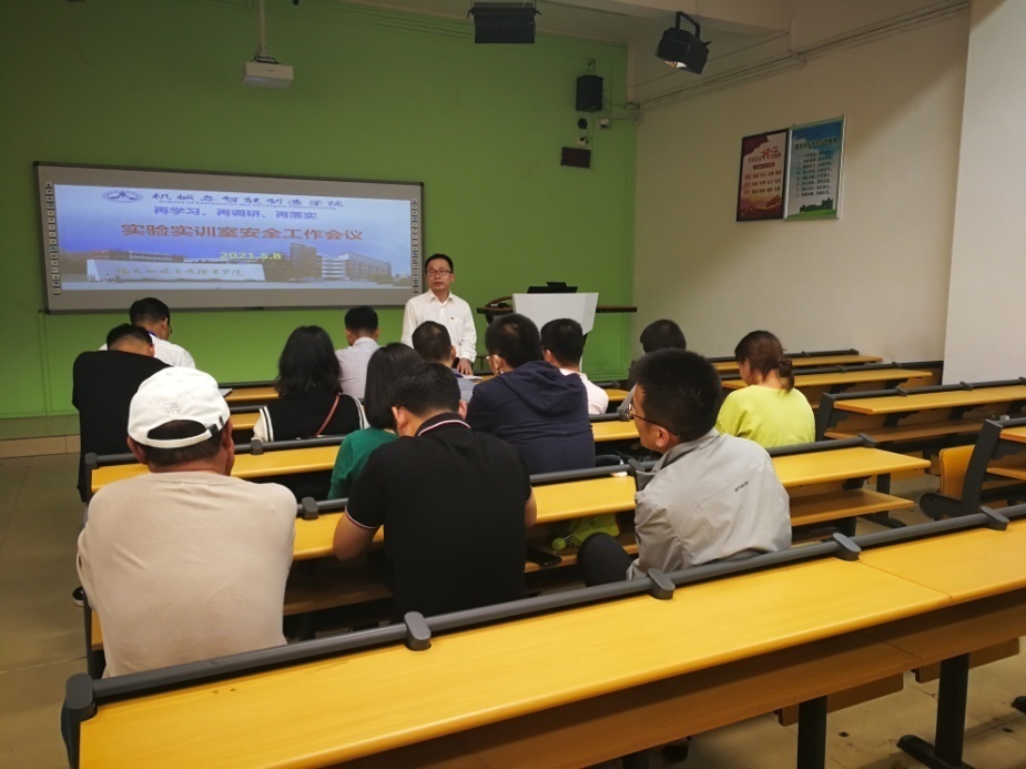 為貫徹落實(shí)習(xí)近平總書記在黨史學(xué)習(xí)教育動(dòng)員大會(huì)上的重要講話精神,扎實(shí)推進(jìn)學(xué)院黨史學(xué)習(xí)教育,貫徹落實(shí)“辦實(shí)事”具體要求,結(jié)合“再學(xué)習(xí)、再調(diào)研、再落實(shí)”活動(dòng)的深入開展,2021年5月8日下午,機(jī)械與智能制造學(xué)院在2號樓1-2多媒體教室召開實(shí)驗(yàn)實(shí)訓(xùn)室安全工作專題會(huì)議。學(xué)院院長楊開懷、副院長陳貴清、實(shí)訓(xùn)中心全體實(shí)訓(xùn)指導(dǎo)老師參加會(huì)議。會(huì)議由實(shí)訓(xùn)中心主任傅樅春主持。