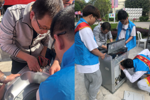 活動(dòng)中,師生們紛紛將已故障的電風(fēng)扇、熱水壺、洗衣機(jī)等常用家電送至義務(wù)維修點(diǎn)。志愿者們以飽滿(mǎn)的熱情為師生們解難答疑,向師生們宣傳普及了常用家電的正確使用及維護(hù)方法;在帶隊(duì)老師的指導(dǎo)下,志愿者們將扎實(shí)的專(zhuān)業(yè)理論知識(shí)轉(zhuǎn)化為成功的現(xiàn)場(chǎng)實(shí)踐,使“故障”家電煥然一新。