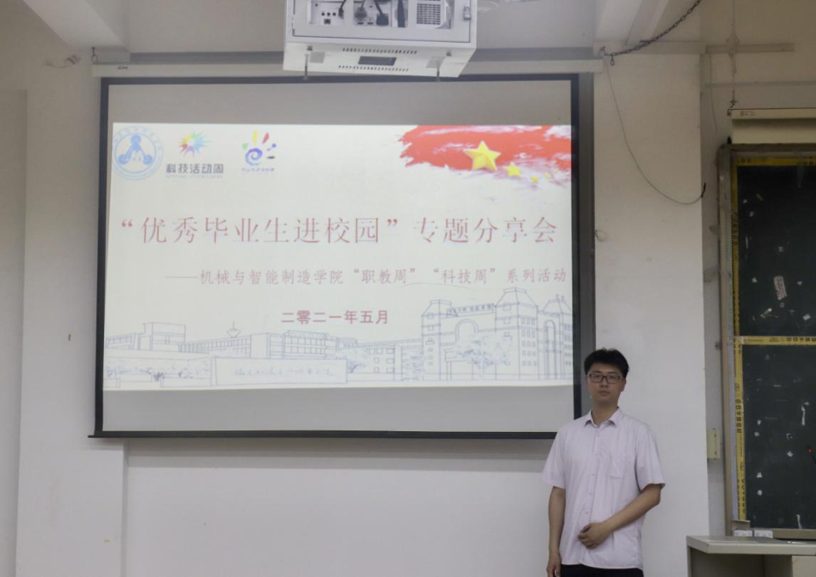 為深入學(xué)習(xí)貫徹全國職業(yè)教育大會精神,大力發(fā)揚職業(yè)教育,大力弘揚勞動光榮、技能寶貴、創(chuàng)造偉大的時代風(fēng)尚,進(jìn)一步營造全社會關(guān)心支持職業(yè)教育的良好氛圍,結(jié)合我院實際,推進(jìn)學(xué)院“雙高”建設(shè),同時也為進(jìn)一步加強我校學(xué)風(fēng)建設(shè),調(diào)動學(xué)生的專業(yè)學(xué)習(xí)熱情,明確大學(xué)生的奮斗方向,使同學(xué)們以良好的心態(tài)規(guī)劃大學(xué)生活,機械與智能制造學(xué)院于2021年5月26日在北區(qū)26號樓605教室舉辦機械與智能制造學(xué)院“職教周”“科技周”系列活動之“優(yōu)秀畢業(yè)生進(jìn)校園主題分享會”。