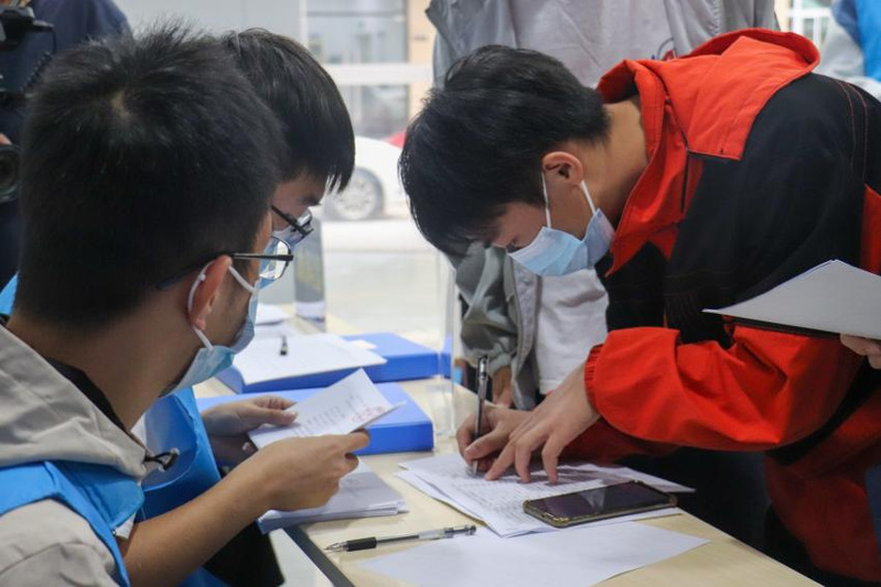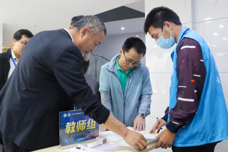 賽前,各院校參賽選手、指導(dǎo)老師,在機(jī)械學(xué)院志愿者的帶領(lǐng)下,登記信息。