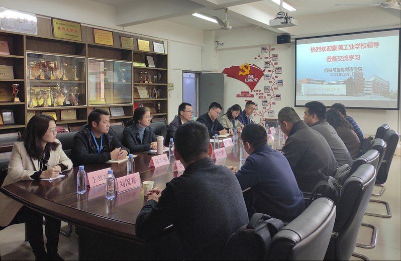 12月9日廈門集美工業(yè)學(xué)校先進(jìn)制造產(chǎn)業(yè)系領(lǐng)導(dǎo)和相關(guān)老師在教務(wù)處長孫躍崗帶領(lǐng)下,來我院調(diào)研交流職業(yè)教育相關(guān)建設(shè)策略,深入探討中高職銜接問題。機(jī)械與智能制造學(xué)院院長楊開懷,副院長王水發(fā)及學(xué)院相關(guān)專業(yè)老師參加座談。