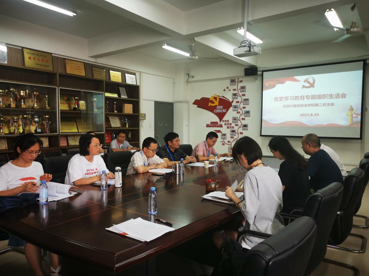 2021年8月25日下午,學(xué)院黨委委員、副院長高汝武同志以普通黨員身份,參加機(jī)械與智能制造學(xué)院第二黨支部黨史學(xué)習(xí)教育專題組織生活會。會議由支部書記楊開懷同志主持,以“學(xué)黨史、悟思想、辦實(shí)事、開新局”為主題,深入交流黨史學(xué)習(xí)教育特別是學(xué)習(xí)習(xí)近平總書記“七一”重要講話精神的體會收獲。