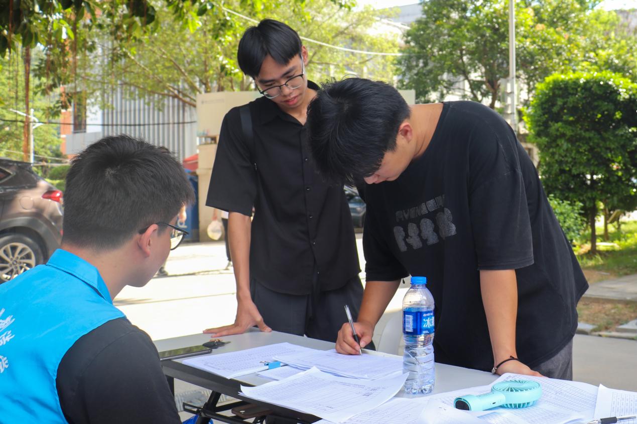 上午,志愿者們?cè)缭缇臀?,以飽滿的熱情、細(xì)致入微的工作態(tài)度迎接每一位返校同學(xué)的到來。