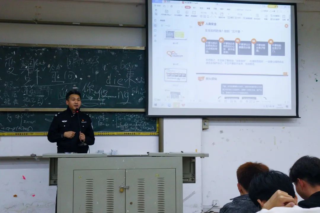 在主題講座中,俞如峰警官通過真實(shí)案列分析,結(jié)合發(fā)生在校園內(nèi)以及周邊的典型案列,給同學(xué)們詳細(xì)地講解了預(yù)防火災(zāi)、交通安全、心理健康、人身安全等方面的相關(guān)知識,并對于女生如何防身問題,提出了“五不要”的建議。正確引導(dǎo)同學(xué)們重視校園安全問題,潛移默化地讓同學(xué)們改正生活中的不良習(xí)慣。呼吁同學(xué)們牢固樹立安全防患觀念,增強(qiáng)安全意識和自我保護(hù)能力,學(xué)會運(yùn)用知識保護(hù)自己的人身安全。