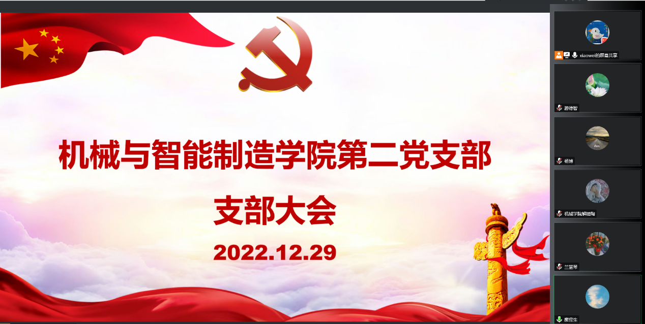 2023年2月20日,機械與智能制造學院第二黨支部在召開2022年度基層黨組織組織生活會和開展民主評議黨員,
