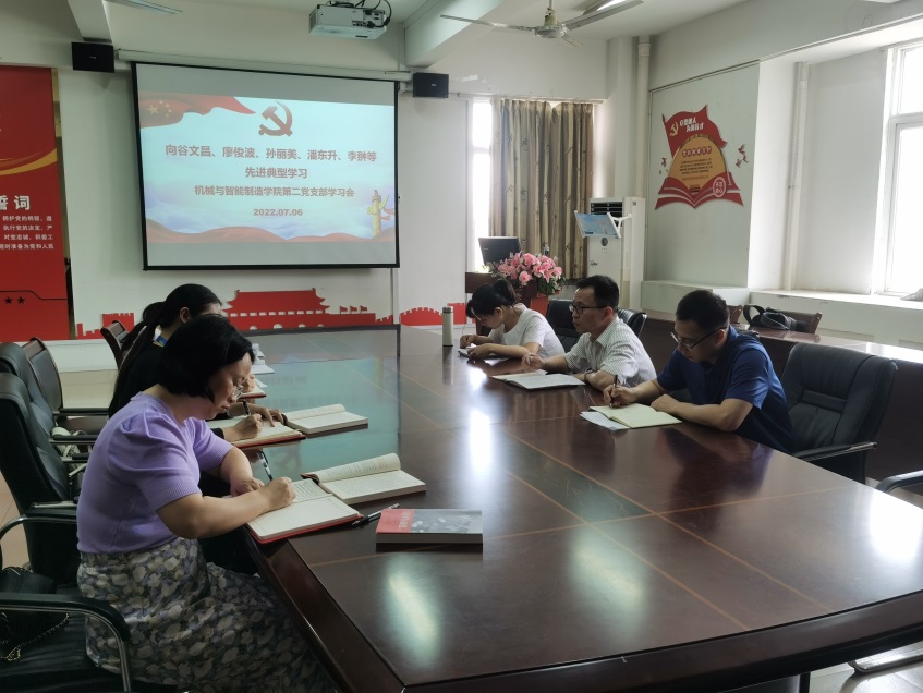 2022年7月6日,機(jī)械與智能制造學(xué)院第二黨支部召開支部學(xué)習(xí)大會(huì),學(xué)習(xí)李翀、谷文昌、廖俊波、孫麗美、潘東升等先進(jìn)典型事跡。