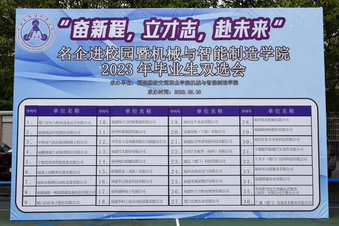 為扎實(shí)開展學(xué)習(xí)貫徹習(xí)近平新時(shí)代中國特色社會(huì)主義思想主題教育,牢牢把握“學(xué)思想、強(qiáng)黨性、重實(shí)踐、建新功”的總要求,貫徹落實(shí)黨中央、國務(wù)院關(guān)于高校畢業(yè)生就業(yè)工作的決策部署,扎實(shí)推進(jìn)我院2023屆畢業(yè)生就業(yè)工作,積極響應(yīng)團(tuán)中央號(hào)召開展“共青團(tuán)促進(jìn)大學(xué)生就業(yè)行動(dòng)”,為用人單位和畢業(yè)生搭建供需橋梁,服務(wù)大學(xué)生實(shí)習(xí)就業(yè)和融入社會(huì),我院舉辦“福建船政交通職業(yè)學(xué)院機(jī)械與智能制造學(xué)院2023屆畢業(yè)生夏季雙選會(huì)”,為我院即將畢業(yè)的2023屆畢業(yè)生聚合優(yōu)質(zhì)就業(yè)資源,引導(dǎo)同學(xué)們積極投身社會(huì)實(shí)踐、掌握求職技巧,促進(jìn)畢業(yè)生高質(zhì)量就業(yè)。