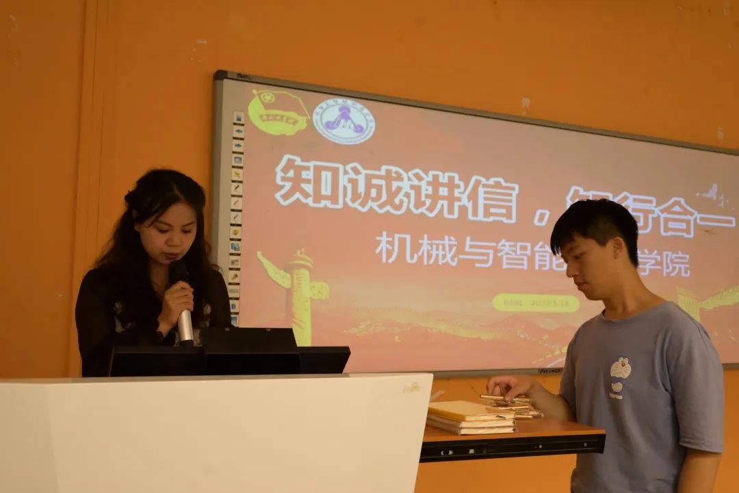 為深入貫徹落實(shí)習(xí)近平總書記關(guān)于教育的重要論述,落實(shí)立德樹人根本任務(wù),大力增強(qiáng)青年學(xué)生的誠(chéng)信意識(shí)、責(zé)任意識(shí)和金融防詐騙意識(shí),引導(dǎo)學(xué)生樹立感恩誠(chéng)信的價(jià)值觀和科學(xué)理性的消費(fèi)觀,增強(qiáng)學(xué)生砥礪奮進(jìn)的使命意識(shí)和責(zé)任擔(dān)當(dāng)。機(jī)械與智能制造學(xué)院于福道園2號(hào)樓1-1教室開展“知誠(chéng)講信,知行合一”知識(shí)競(jìng)答活動(dòng)。