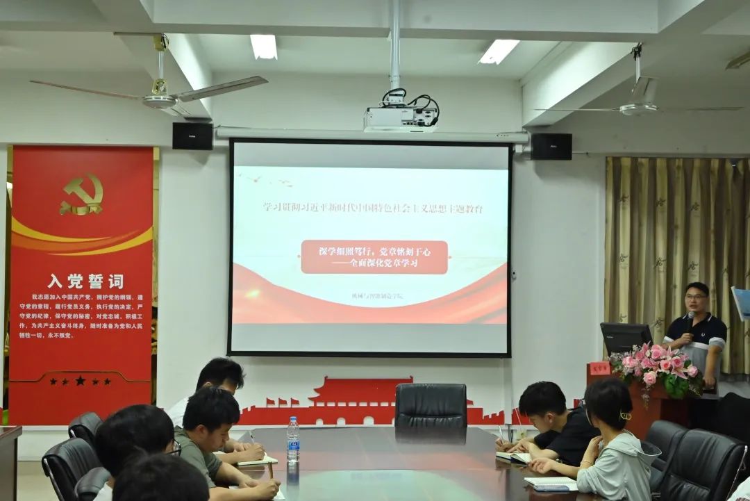 為深入開展學(xué)習(xí)貫徹習(xí)近平新時(shí)代中國特色社會(huì)主義思想主題教育,牢牢把握“學(xué)思想、強(qiáng)黨性、重實(shí)踐、建新功”總要求,5月22日晚,根據(jù)我院主題教育學(xué)習(xí)計(jì)劃要求,我院組織全體學(xué)生預(yù)備黨員于福道園26號(hào)樓305會(huì)議室開展學(xué)習(xí)貫徹習(xí)近平新時(shí)代中國特色社會(huì)主義思想主題教育專題黨課,我院黨總支副書記肖秀林以《深學(xué)細(xì)照篤行,黨章銘刻于心——全面深化黨章學(xué)習(xí)》為題講授主題教育專題黨課。