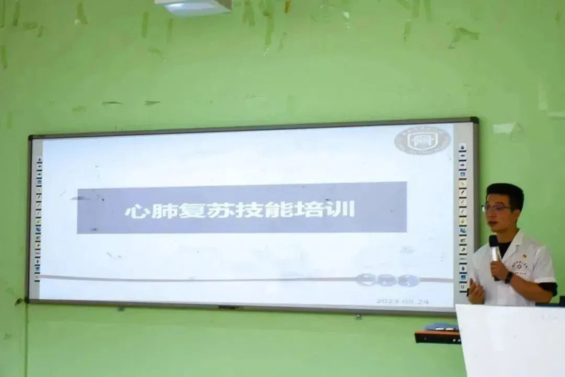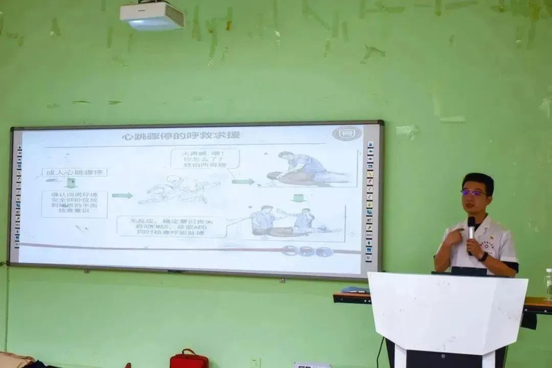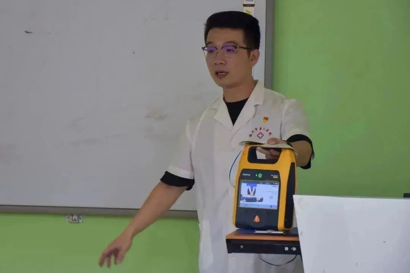 在活動中,林凡非醫(yī)生開展心肺復(fù)蘇技能培訓,向在場的眾人介紹全面普及了急救知識并現(xiàn)場使用假人教學在應(yīng)急場合中如何進行正確的心肺復(fù)蘇以及AED自動體外除顫器的使用方法。