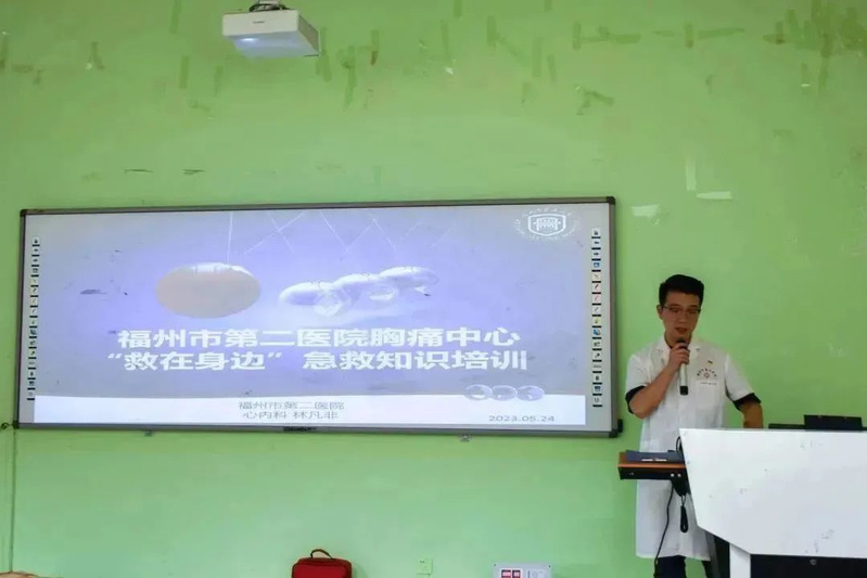 本次活動由福州市第二醫(yī)院心內(nèi)科林凡非醫(yī)生開展“救在身邊”急救知識培訓。