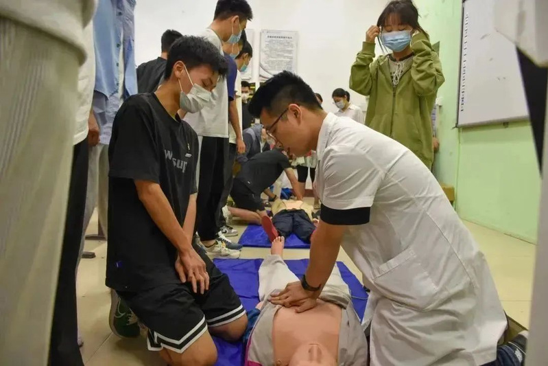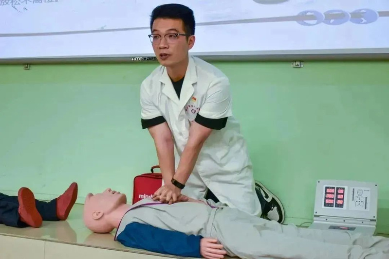 在進行詳細的心肺復(fù)蘇技能介紹及教學后,林凡非醫(yī)生邀請每位參會同學親身體驗心肺復(fù)蘇,并對體驗過程中不規(guī)范的操作進行矯正。