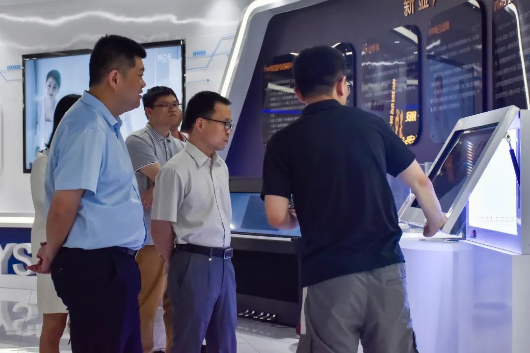 新型顯示產(chǎn)業(yè)園內(nèi)的工作人員全面深入地講解了企業(yè)的發(fā)展歷程、深耕領(lǐng)域、重要產(chǎn)品、解決方案。在其帶領(lǐng)下,我院一行參觀了智慧展示中心,并向大家展示了最新研發(fā)的新型技術(shù)。大家通過(guò)講解聆聽(tīng)、圖文資料觀看、實(shí)地參觀,切身感受到企業(yè)在以創(chuàng)新為引領(lǐng)、以科研為動(dòng)力、以人才為支撐,探索綠色化、低碳化、數(shù)字化轉(zhuǎn)型方面做出的改革和努力。