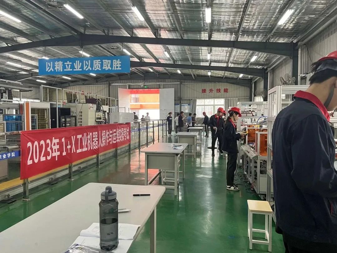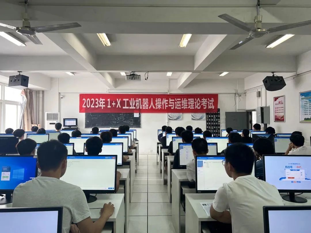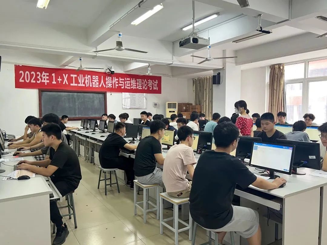 為貫徹落實《國家職業(yè)教育改革實施方案》和《關(guān)于在院校實施“學(xué)歷證書若干職業(yè)技能等級證書”制度試點方案》等文件精神。我校與2023年6月17日、28日分別進行了工業(yè)機器人操作與運維1+X證書試點理論考試、實操考試。本次考證對象為21級工業(yè)機器人技術(shù)專業(yè)學(xué)生共計80人,圓滿完成了本年度的考核。