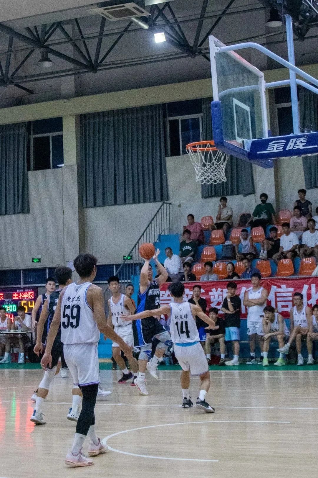 末節(jié)決戰(zhàn),雙方你來我往,我院繼續(xù)保持高強度的防守,在前場不斷進行高位逼搶,利用流暢的組織傳導(dǎo)球頻繁進攻對手的內(nèi)線,我院憑借出色的攻防轉(zhuǎn)換將比分一步步拉開。