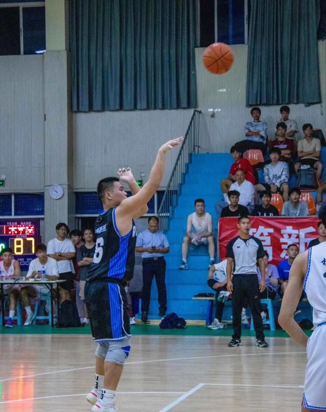 在總決賽開場前,我院黨總支書記林少丹、副書記肖秀林也來到現(xiàn)場為我院籃球隊隊員加油助威。