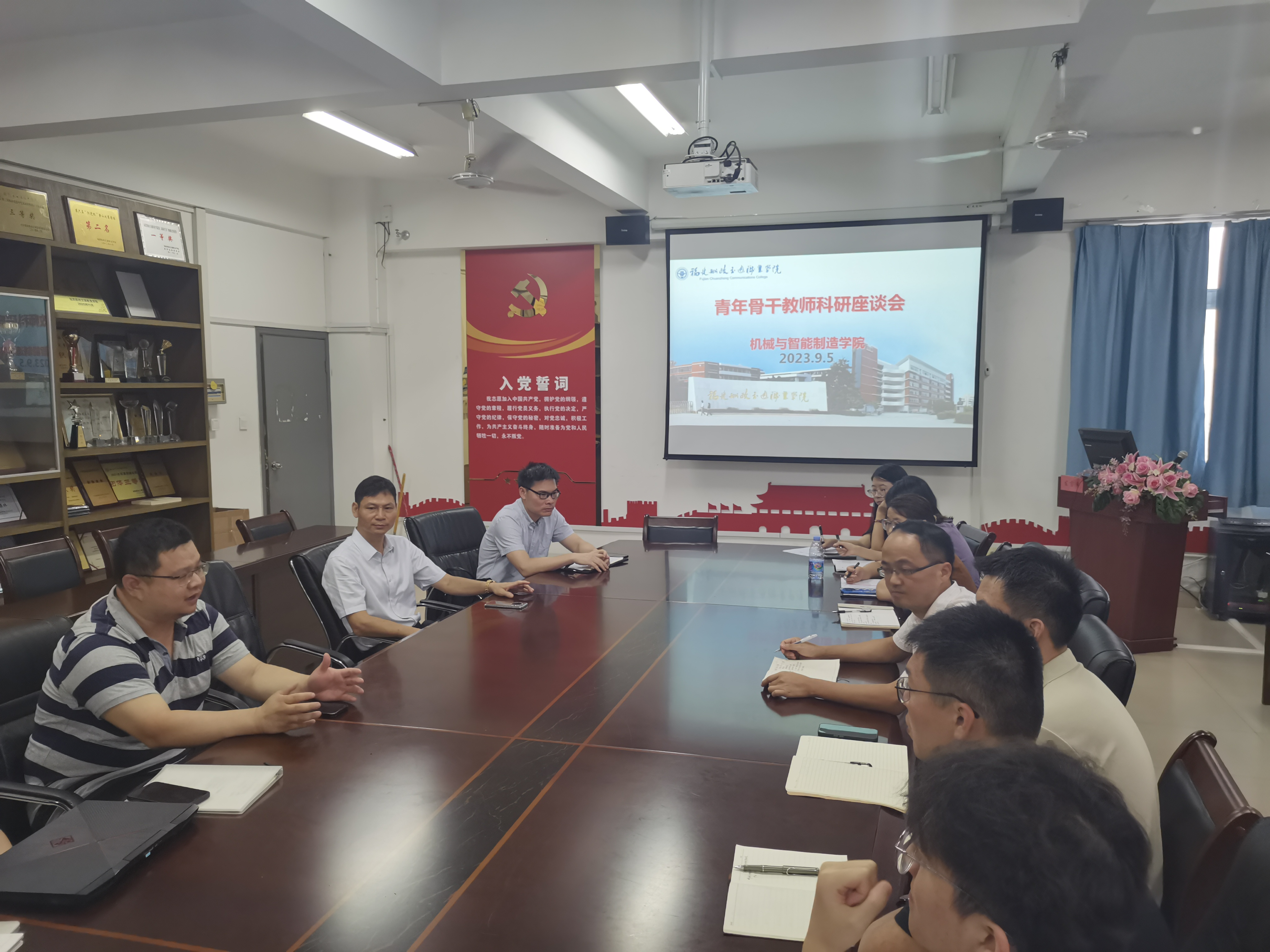 2023年9月5日,機械與智能制造學院召開青年教師科研工作座談會,科技處副處長沈培輝博士、機械學院副院長陳貴清博士、機械學院莊志忠教授、汽車學院教師施火結(jié)博士后、土木學院黃漢輝博士后出席了會議,機械與智能制造學院近兩年入職的40周歲以下青年教師參加本次座談會。