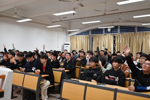 答題環(huán)節(jié)緊張刺激,同學(xué)們爭先搶答,氣氛活躍,一雙雙高高舉起的手臂充分展現(xiàn)出了參賽選手儲備豐厚的國家憲法相關(guān)知識。