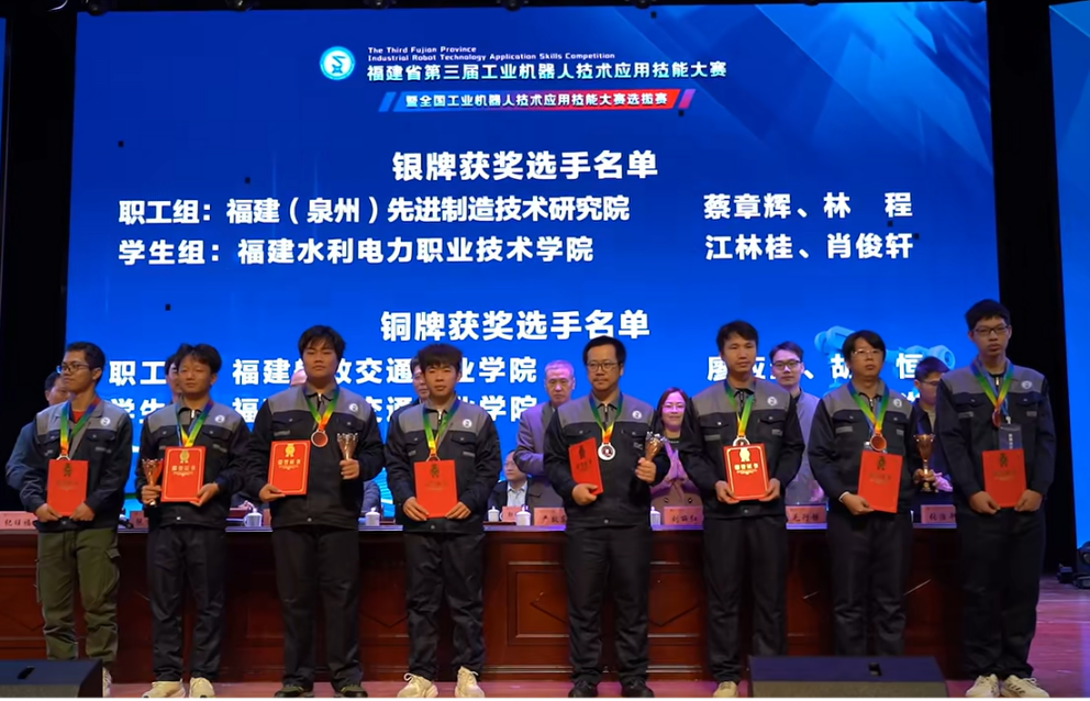 2023年12月2日-12月16日,福建省第三屆工業(yè)機(jī)器人技術(shù)應(yīng)用技能大賽暨全國(guó)工業(yè)機(jī)器人技術(shù)應(yīng)用技能大賽選拔賽在福建水利電力職業(yè)技術(shù)學(xué)院開(kāi)賽。來(lái)自全省各地25家制造業(yè)企業(yè)、17所本科院校、60所職業(yè)院校、15所技工院校的234名職工和學(xué)生,共117支隊(duì)伍報(bào)名參賽,其中,職工組55隊(duì)、學(xué)生組62隊(duì)。經(jīng)過(guò)選手們激烈角逐,我院學(xué)生江志鵬、曾文焱獲學(xué)生組銅獎(jiǎng),支部老師胡恒和廖應(yīng)生兩位老師獲職工組銅獎(jiǎng)。