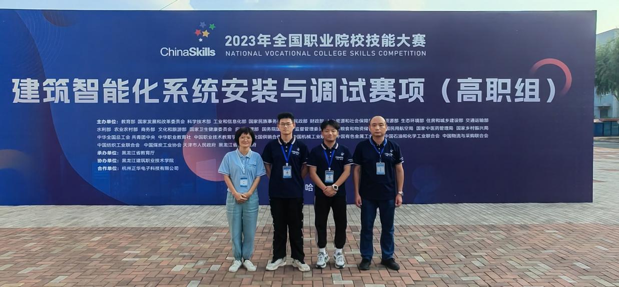 2023年9月17日--9月21日,全國職業(yè)院校技能大賽“建筑智能化系統(tǒng)安裝與調(diào)試”賽項在黑龍江建筑職業(yè)技術(shù)學(xué)院舉行,來自全國29個省、自治區(qū)、直轄市的65所參賽學(xué)校的300多名參賽選手參賽。經(jīng)過緊張激烈的比賽,支部黨員游德智老師和另一位教師肖麗佳老師指導(dǎo)的江志鵬、林鑫同學(xué)獲得學(xué)生賽團(tuán)體三等獎。