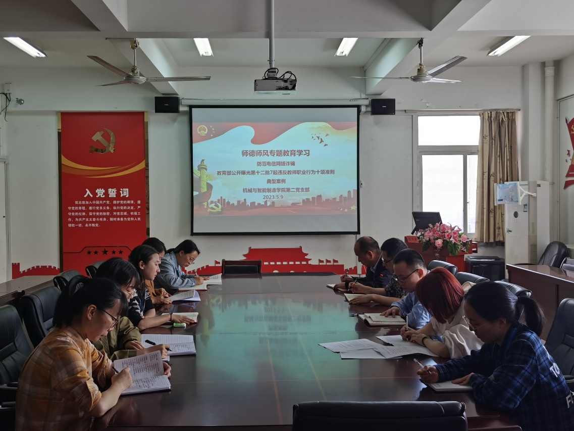 機(jī)械與智能制造學(xué)院第二黨支部開(kāi)展《防范電信網(wǎng)絡(luò)詐騙》、《教育部公開(kāi)曝光第十二批7起違反教師職業(yè)行為十項(xiàng)準(zhǔn)則典型案例》學(xué)習(xí)教育活動(dòng)。