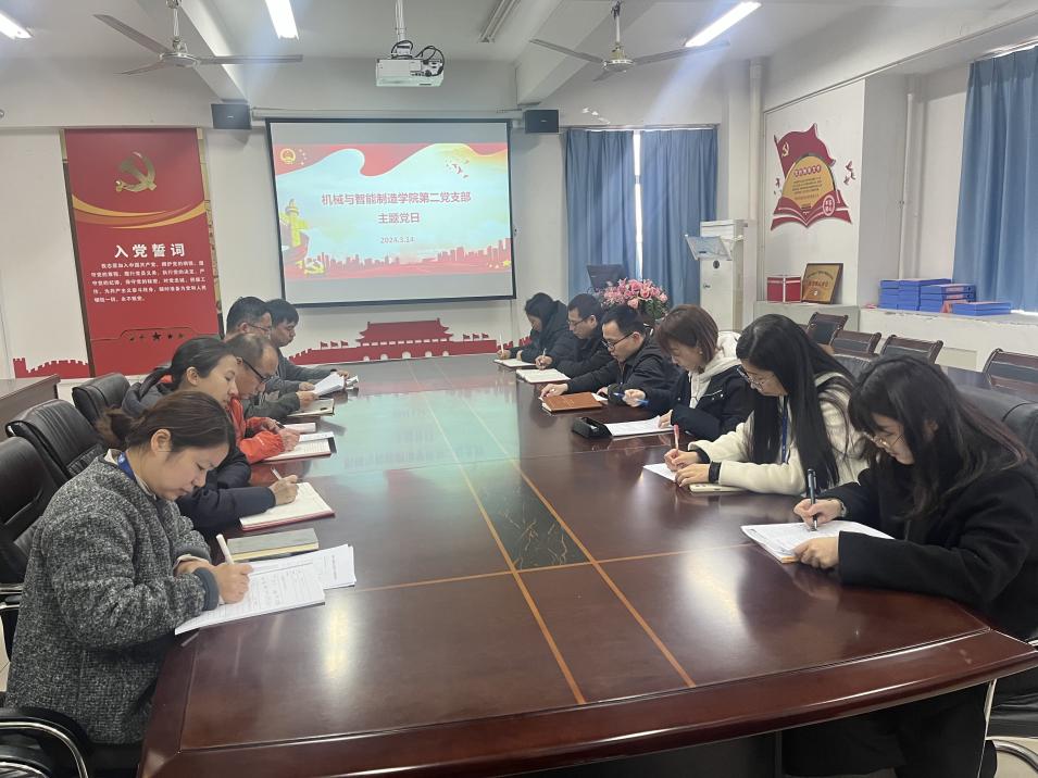 2024年3月14日機(jī)械與智能制造學(xué)院第二黨支部召開(kāi)支部學(xué)習(xí)大會(huì),學(xué)習(xí)《習(xí)近平主持二十屆中共中央政治局第十二次集體學(xué)習(xí)》、《習(xí)近平:加強(qiáng)和改進(jìn)人民政協(xié)工作全面發(fā)展協(xié)商民主》、《習(xí)近平:堅(jiān)持和完善人民代表大會(huì)制度保障人民當(dāng)家作主》、《黨史學(xué)習(xí)教育工作條例》等文件精神。