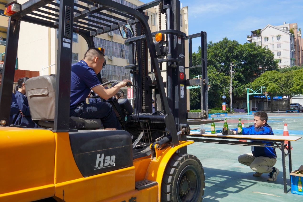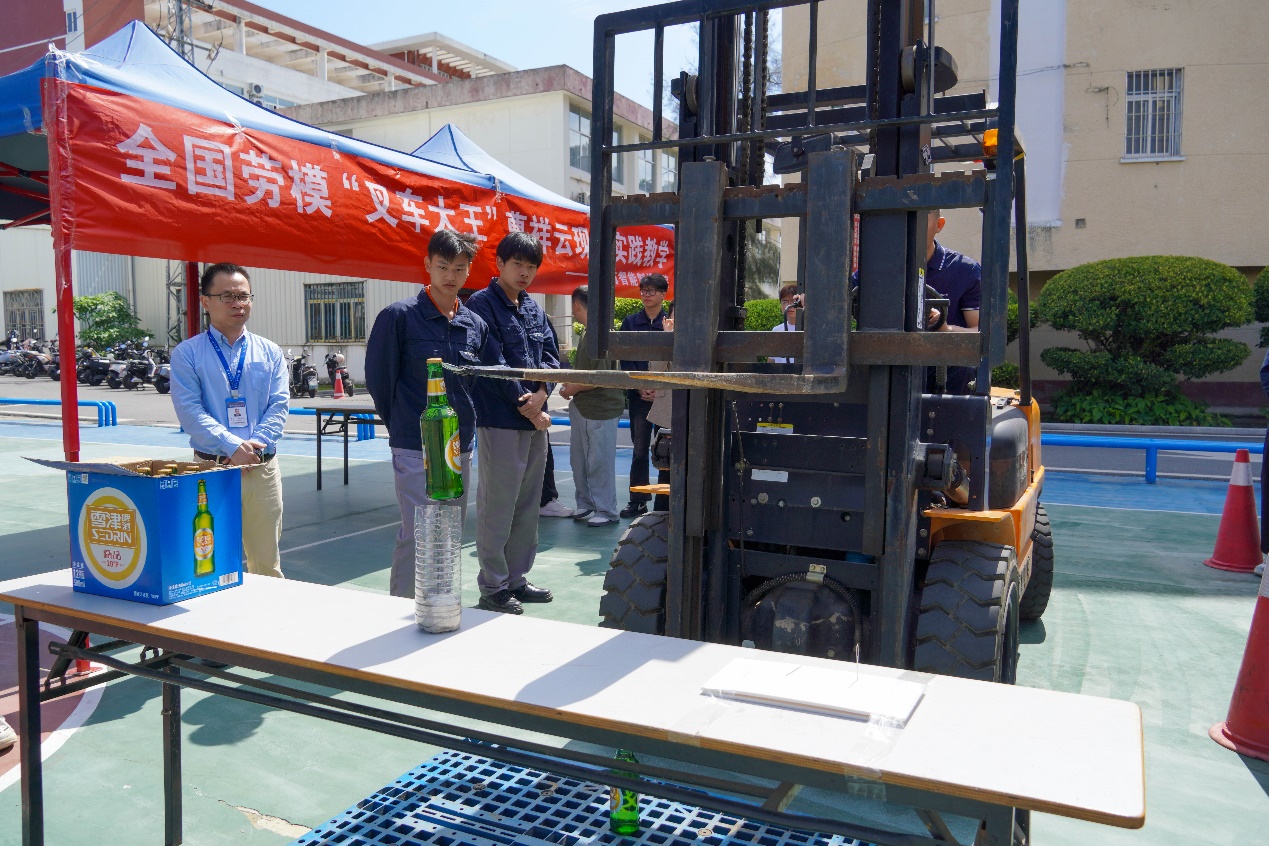 (圖4:曹祥云技能大師進(jìn)行叉車(chē)運(yùn)酒瓶技能展示)