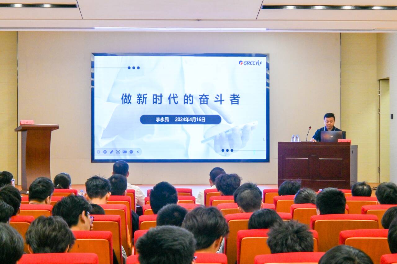 結(jié)束了精彩絕倫的叉車(chē)技能展示后,曹祥云技能大師為我院師生作了題為“‘叉車(chē)大王’的堅(jiān)持與熱愛(ài)”的主題講座,深刻闡釋了“何為時(shí)代楷模”、“何為工匠精神”,他圍繞入職格力前后的個(gè)人經(jīng)歷,培訓(xùn)學(xué)習(xí)、團(tuán)隊(duì)管理等方面的心路歷程展開(kāi)分享并鼓勵(lì)同學(xué)們要將技能報(bào)國(guó)的夢(mèng)想和信念根植于心中,將工匠精神融入日常的學(xué)習(xí)實(shí)踐中,精益求精、專(zhuān)心致志,在平凡崗位上做出不平凡的業(yè)績(jī),爭(zhēng)當(dāng)新時(shí)代的奮斗者。