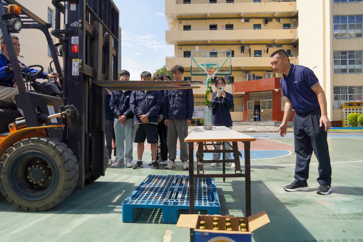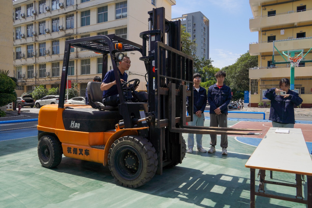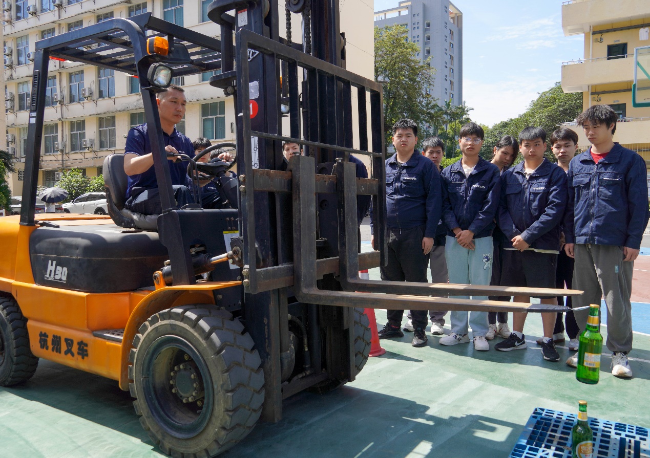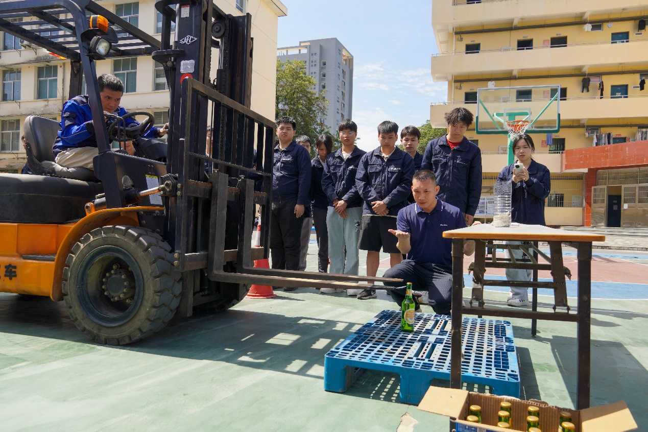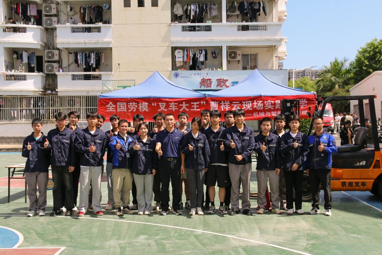 吉尼斯叉車(chē)技術(shù)紀(jì)錄成功挑戰(zhàn)者、全國(guó)叉車(chē)技能冠軍曹祥云技能大師在福道園工程機(jī)械與港口設(shè)備實(shí)訓(xùn)室為同學(xué)們進(jìn)行了一場(chǎng)精彩絕倫的叉車(chē)技能現(xiàn)場(chǎng)教學(xué)?!安孳?chē)運(yùn)酒瓶、叉車(chē)開(kāi)瓶蓋、叉車(chē)疊螺母、叉車(chē)穿針孔”等CCTV-1《挑戰(zhàn)不可能》節(jié)目中的極限絕活將曹祥云大師精湛的叉車(chē)技術(shù)展現(xiàn)得淋漓盡致。在教學(xué)過(guò)程中,曹祥云大師還親自指導(dǎo)師生進(jìn)行叉車(chē)叉運(yùn)木箱,倒車(chē)?yán)@樁等實(shí)操項(xiàng)目,并就叉車(chē)駕駛“快、準(zhǔn)、穩(wěn)”等綜合技術(shù)水平的練就進(jìn)行了生動(dòng)的講解。他勉勵(lì)同學(xué)們要堅(jiān)定走技能成才、技能報(bào)國(guó)之路,珍惜學(xué)習(xí)時(shí)光,努力學(xué)習(xí)、積極實(shí)踐、苦練內(nèi)功,掌握扎實(shí)專(zhuān)業(yè)理論與過(guò)硬專(zhuān)業(yè)技術(shù)本領(lǐng),全面提升自身綜合素質(zhì),用時(shí)不我待的人生態(tài)度書(shū)寫(xiě)匠心筑夢(mèng)的青春篇章。
