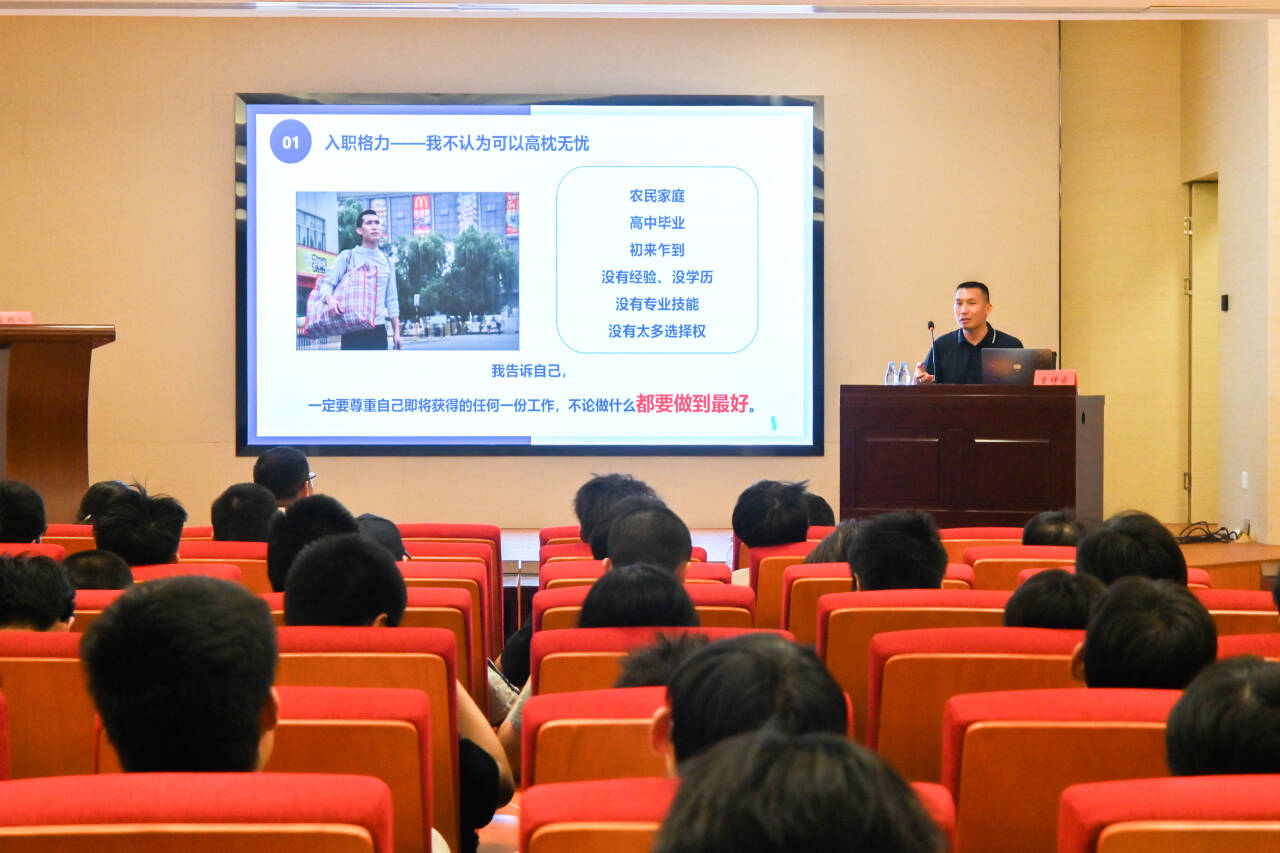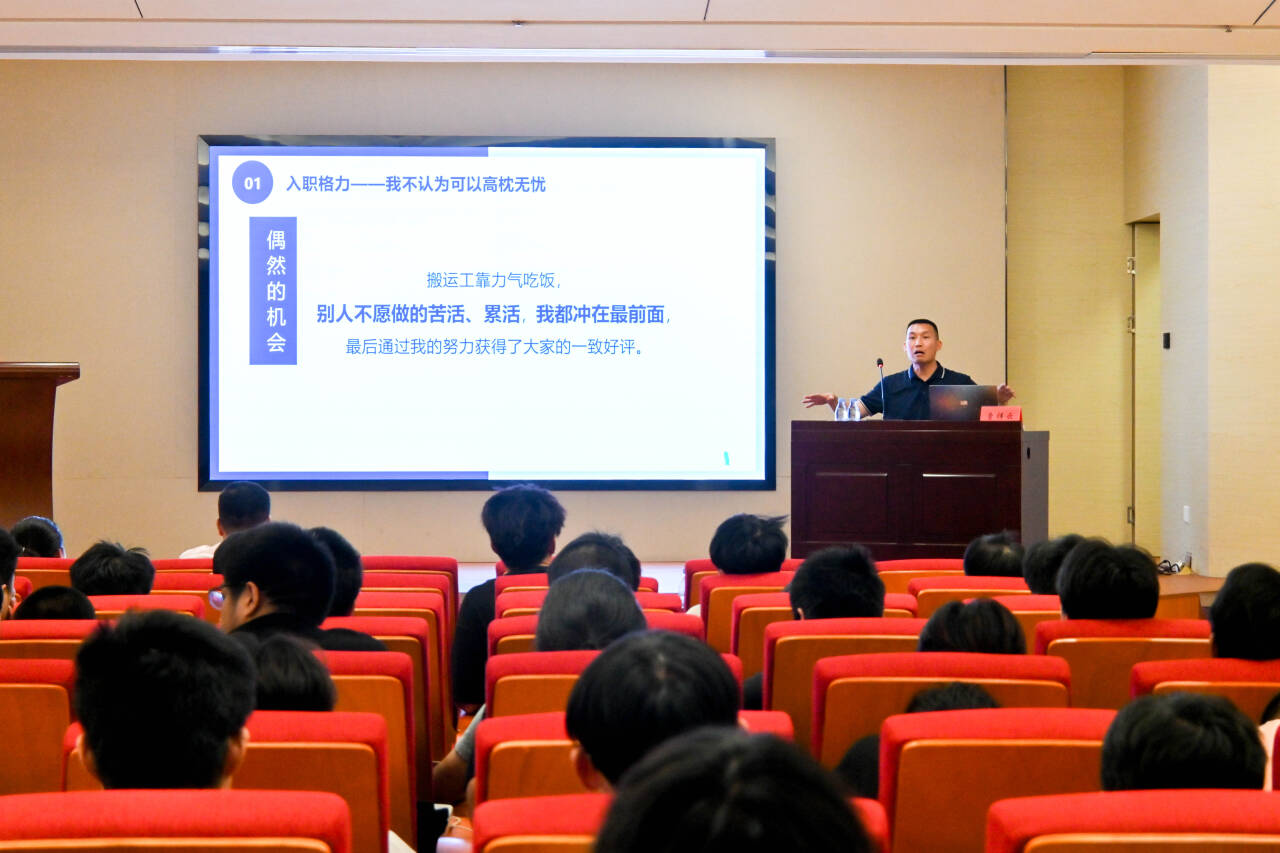 活動(dòng)首先由全國(guó)技術(shù)能手李永民大師作題為“做新時(shí)代的奮斗者”的專(zhuān)題講座。他圍繞個(gè)人成長(zhǎng)之路與企業(yè)發(fā)展的關(guān)系,結(jié)合長(zhǎng)期躬耕一線的實(shí)踐經(jīng)歷,用生動(dòng)的案例、質(zhì)樸的語(yǔ)言和同學(xué)們分享了勞模工匠精神的養(yǎng)成、敬業(yè)奉獻(xiàn)精神的鍛造、服務(wù)人民情懷的鑄就,勉勵(lì)同學(xué)們要勤于學(xué)習(xí)、勇于實(shí)踐,立足工作崗位,以技立身、以技報(bào)國(guó),在博學(xué)強(qiáng)識(shí)中夯實(shí)基礎(chǔ),在勤思創(chuàng)新中提升能力,在實(shí)踐實(shí)干中增長(zhǎng)本領(lǐng),不斷提高綜合素質(zhì),在全面建設(shè)社會(huì)主義現(xiàn)代化國(guó)家的火熱實(shí)踐中發(fā)揮職教人的典型、示范帶動(dòng)作用。