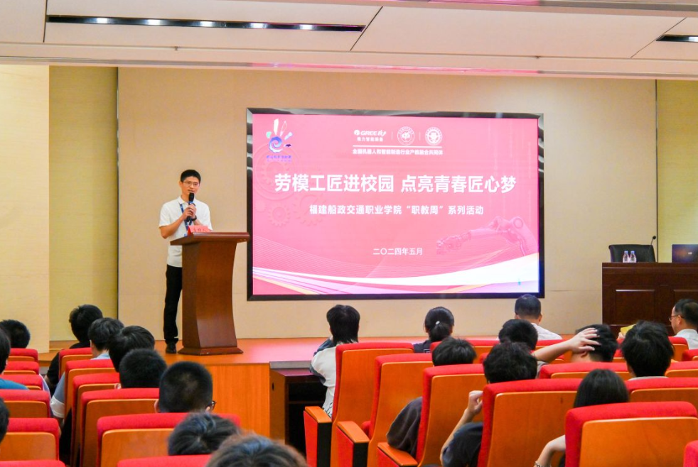 為深入貫徹落實(shí)習(xí)近平總書(shū)記關(guān)于職業(yè)教育的重要講話和重要指示批示精神,全面落實(shí)立德樹(shù)人根本任務(wù),大力培養(yǎng)高素質(zhì)技能人才,充分發(fā)揮勞模工匠在職業(yè)教育中的精神感召和教育榜樣作用,5月17日,福建船政交通職業(yè)學(xué)院機(jī)械與智能制造學(xué)院舉辦了“勞模工匠進(jìn)校園 點(diǎn)亮青春匠心夢(mèng)”——職教周系列活動(dòng)?;顒?dòng)邀請(qǐng)了全國(guó)技術(shù)能手——珠海格力電器股份有限公司設(shè)備科班長(zhǎng)李永民及勞模“叉車(chē)大王”——珠海格力電器股份有限公司叉車(chē)駕駛員曹祥云兩位優(yōu)秀勞模典范和工匠大師,活動(dòng)由機(jī)械與智能制造學(xué)院副院長(zhǎng)曾思通主持。