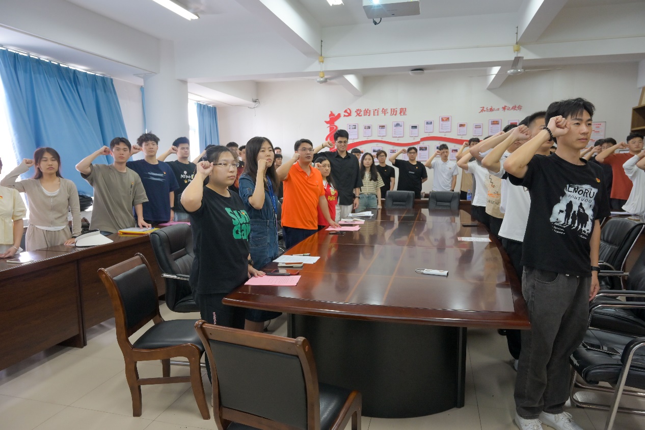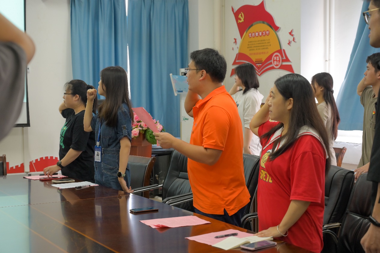 大會伊始,由黨總支副書記肖秀林帶領(lǐng)大家面對黨旗,重溫入黨誓詞。