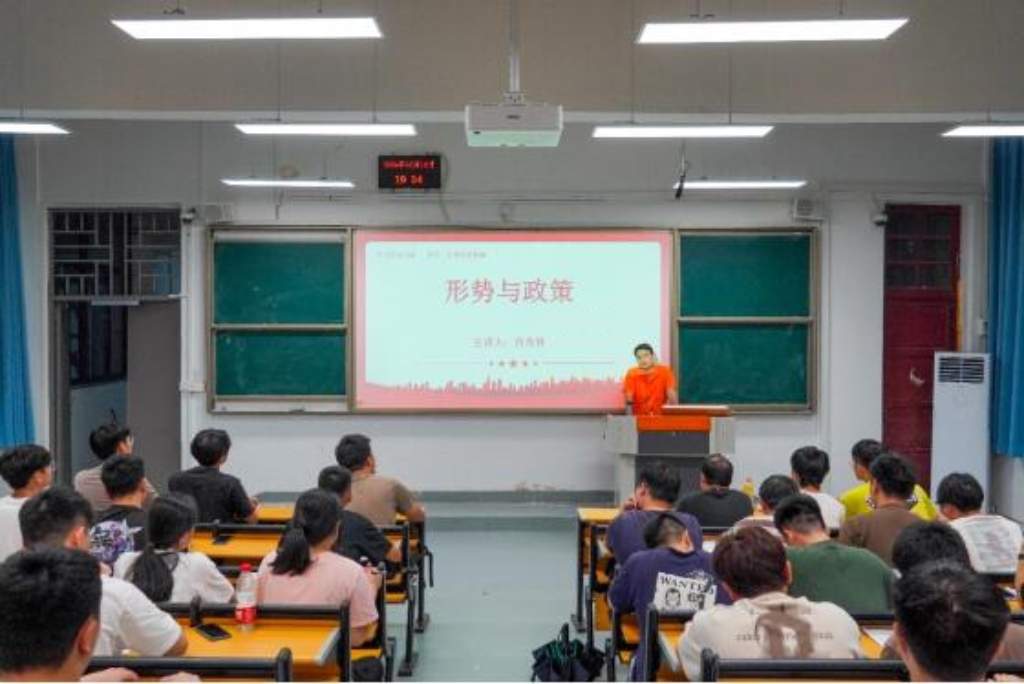 機(jī)械與智能制造學(xué)院黨總支副書記肖秀林,于2024年6月17日晚上在福道園八號樓的第一階梯教室就“世界變亂交織,中國篤行擔(dān)當(dāng)”為主題,為22級部分學(xué)生上了一堂形勢與政策課。