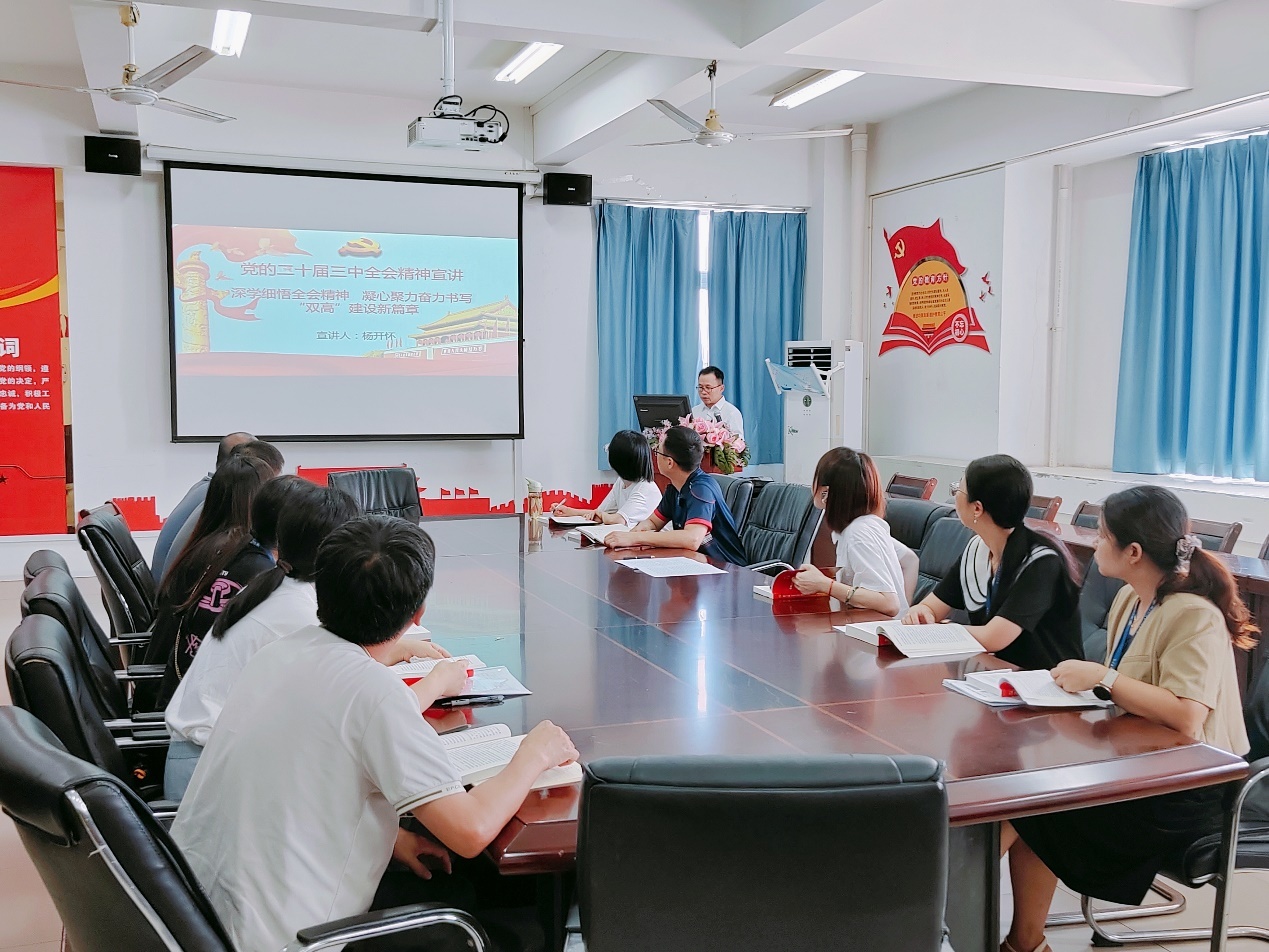 2024年9月11日,機(jī)械與智能制造學(xué)院第二黨支部開(kāi)展學(xué)習(xí)貫徹黨的二十屆三中全會(huì)精神宣講活動(dòng),支部書(shū)記楊開(kāi)懷做題為《深學(xué)細(xì)悟全會(huì)精神 凝心聚力奮力書(shū)寫(xiě)“雙高”建設(shè)新篇章》的宣講報(bào)告。