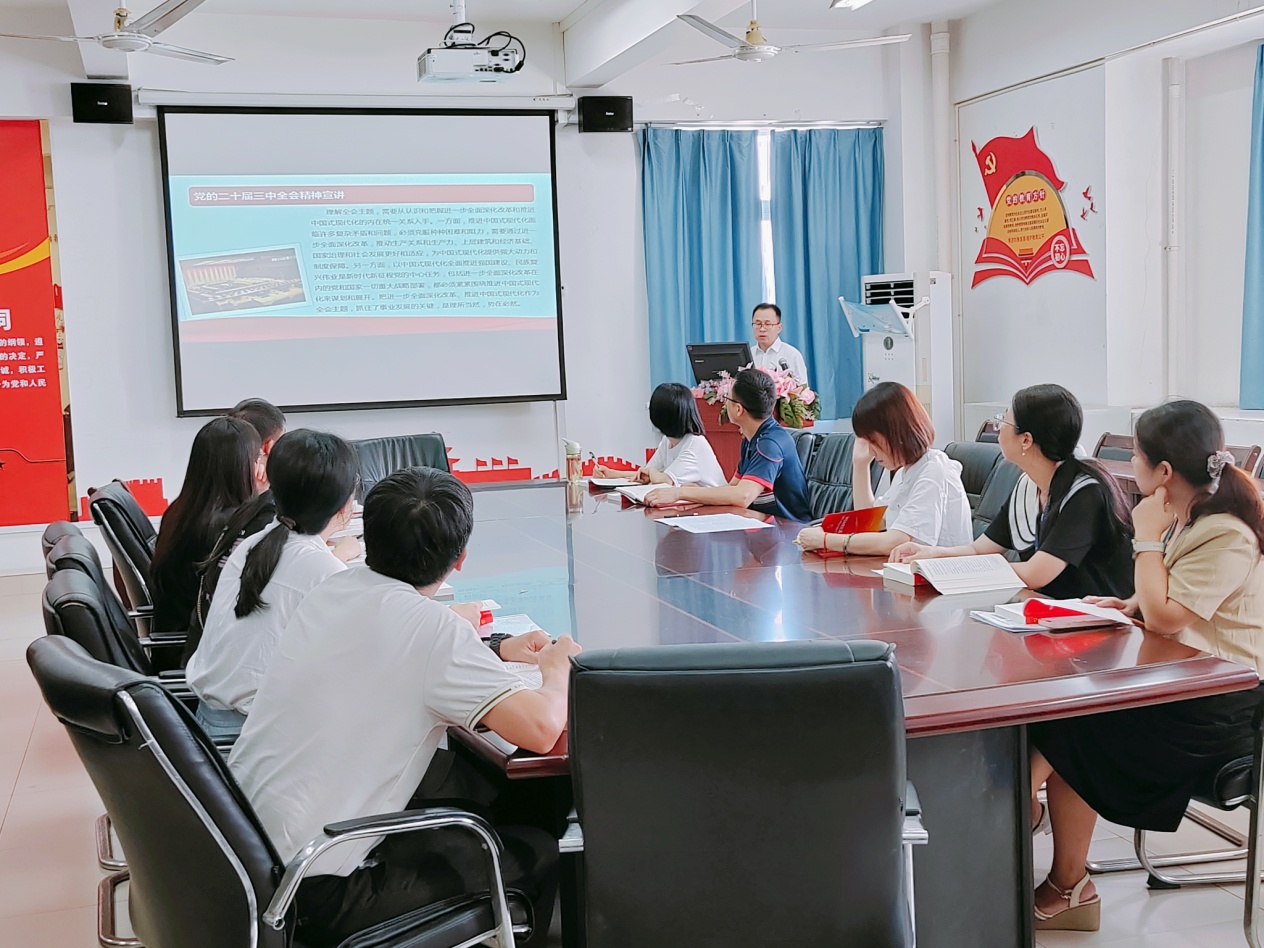 楊開(kāi)懷同志首先介紹了關(guān)于全會(huì)的基本情況,然后從五個(gè)方面帶領(lǐng)支部全體黨員深入學(xué)習(xí)領(lǐng)會(huì)習(xí)近平總書(shū)記在黨的二十屆三中全會(huì)上的重要講話精神。第一,深刻認(rèn)識(shí)黨的二十屆三中全會(huì)以來(lái)黨和國(guó)家事業(yè)取得的重大成就;第二,深刻認(rèn)識(shí)進(jìn)一步全面深化改革的重要性和必要性;第三,深刻認(rèn)識(shí)進(jìn)一步全面深化改革的重大原則;第四,深刻認(rèn)識(shí)推進(jìn)改革中需要把握的一些重大問(wèn)題;第五,深刻認(rèn)識(shí)黨中央對(duì)下半年工作的重要部署。