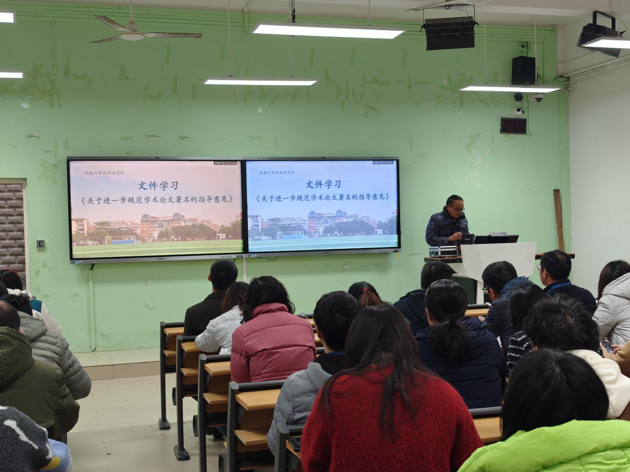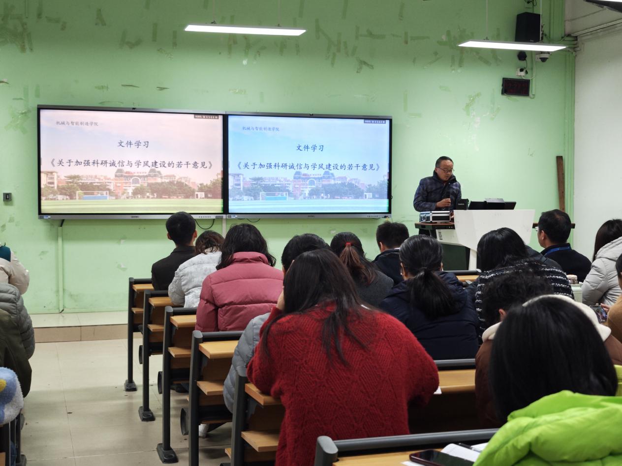 為進(jìn)一步加強(qiáng)科研誠(chéng)信建設(shè),營(yíng)造風(fēng)清氣正的學(xué)術(shù)環(huán)境,培養(yǎng)良好的學(xué)風(fēng),機(jī)械與智能制造學(xué)院于2025年2月19日下午組織全體教職工開(kāi)展關(guān)于加強(qiáng)科研誠(chéng)信與學(xué)風(fēng)建設(shè)的專(zhuān)題文件學(xué)習(xí)活動(dòng)。此次活動(dòng)旨在深入貫徹落實(shí)國(guó)家關(guān)于科研誠(chéng)信和學(xué)風(fēng)建設(shè)的重要指示精神,推動(dòng)學(xué)院科研與教育工作高質(zhì)量發(fā)展。學(xué)習(xí)會(huì)議由楊開(kāi)懷院長(zhǎng)主持,陳貴清副院長(zhǎng)領(lǐng)學(xué)。