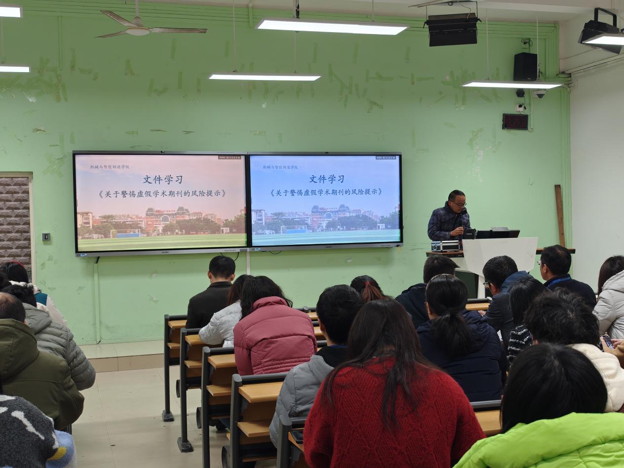 為進(jìn)一步加強(qiáng)科研誠(chéng)信建設(shè),營(yíng)造風(fēng)清氣正的學(xué)術(shù)環(huán)境,培養(yǎng)良好的學(xué)風(fēng),機(jī)械與智能制造學(xué)院于2025年2月19日下午組織全體教職工開(kāi)展關(guān)于加強(qiáng)科研誠(chéng)信與學(xué)風(fēng)建設(shè)的專題文件學(xué)習(xí)活動(dòng)。此次活動(dòng)旨在深入貫徹落實(shí)國(guó)家關(guān)于科研誠(chéng)信和學(xué)風(fēng)建設(shè)的重要指示精神,推動(dòng)學(xué)院科研與教育工作高質(zhì)量發(fā)展。學(xué)習(xí)會(huì)議由楊開(kāi)懷院長(zhǎng)主持,陳貴清副院長(zhǎng)領(lǐng)學(xué)。