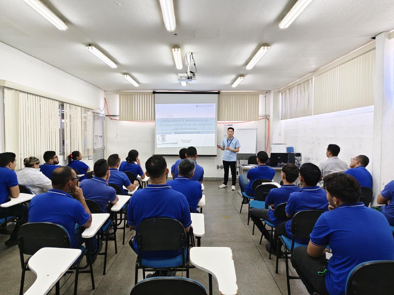 揭牌儀式后,福建船政交通職業(yè)學(xué)院教師團(tuán)隊(duì)為巴西基地員工開(kāi)展為期6天的專業(yè)技能培訓(xùn)。課程設(shè)置液壓驅(qū)動(dòng)系統(tǒng)故障診斷、智能裝備電氣安全操作、工業(yè)機(jī)器人操作維護(hù)等模塊,采用“理論+實(shí)操”雙元教學(xué)模式,通過(guò)解剖液壓系統(tǒng)、電氣安全操作、電路故障排查維護(hù)等實(shí)踐訓(xùn)練,系統(tǒng)提升學(xué)員智能制造設(shè)備維護(hù)核心技能,同時(shí)為當(dāng)?shù)嘏嘤?xùn)中心實(shí)訓(xùn)基地建設(shè)提供實(shí)地指導(dǎo)。