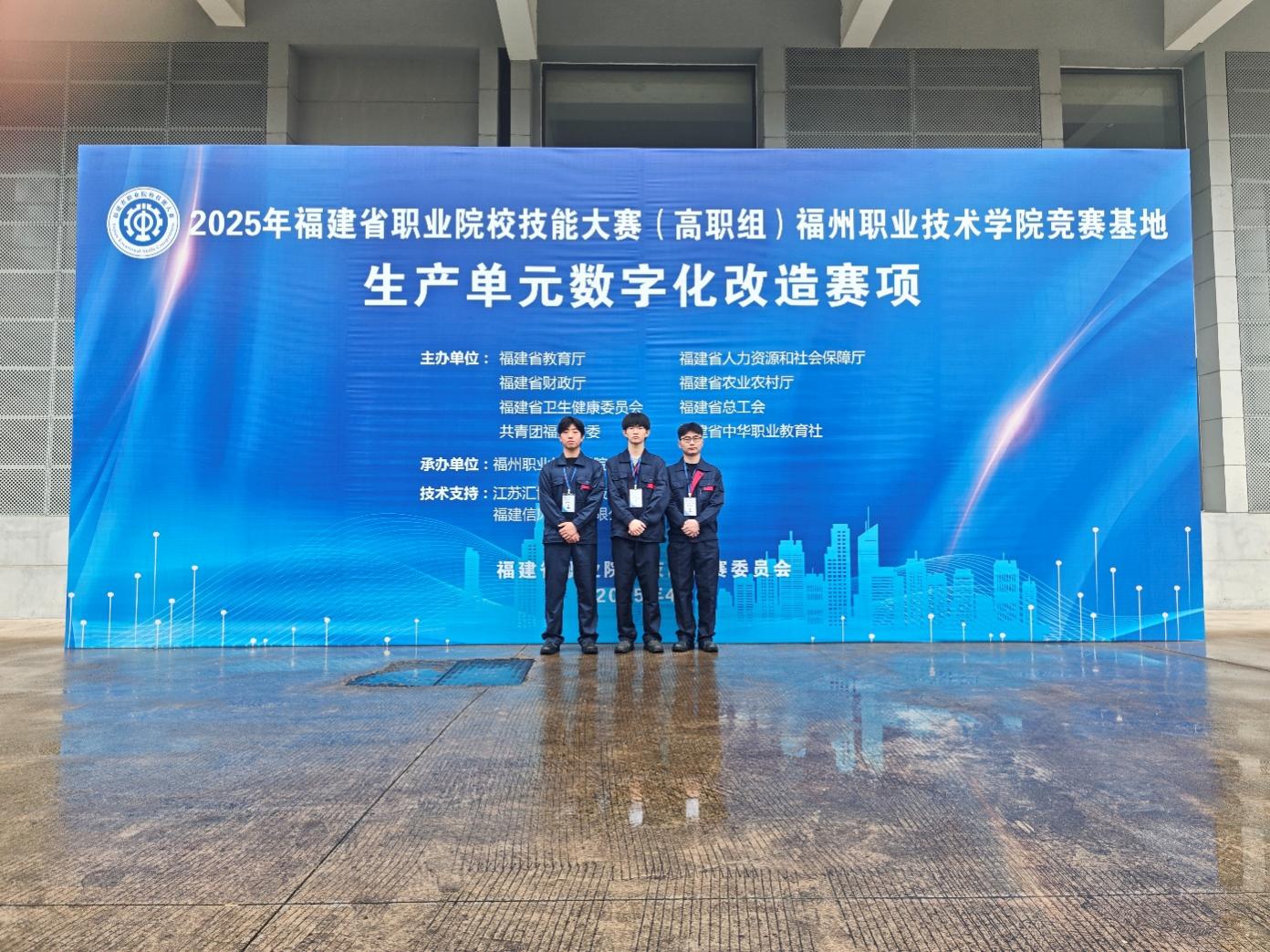 2025年4月9日至10日,福建省職業(yè)院校技能大賽(高職組)“生產(chǎn)單元數(shù)字化改造”賽項(xiàng)在福州職業(yè)技術(shù)學(xué)院舉行,機(jī)械與智能制造學(xué)院嚴(yán)仕先和鄭曉輝老師指導(dǎo)蔡景燁、趙啟承和陳騁組成的代表隊(duì)榮獲三等獎(jiǎng)。在賽場上,他們憑借深厚的專業(yè)功底與默契無間的團(tuán)隊(duì)協(xié)作,將我院學(xué)子精益求精、密益求密的精神風(fēng)貌展現(xiàn)得淋漓盡致。