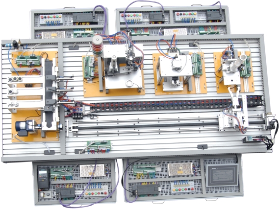 本賽項競賽平臺采用浙江亞龍有限公司提供的“YL-335B機電一體化綜合實訓設備”,主要供料單元、加工單元、裝配單元、分揀單元、輸送單元組成,是一個完整的自動化生產(chǎn)線的模擬裝置。應用了PLC控制技術、變頻控制技術、伺服控制技術、工業(yè)傳感器技術、電機驅動技術等工業(yè)自動化相關技術。