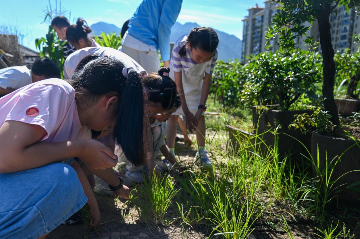 活動最后,倡導(dǎo)團成員們與孩子們一同來到學(xué)校小菜園開展拔草實踐。大家彎下腰細(xì)心清理雜草,汗水浸濕了衣衫,卻絲毫阻擋不了那份高漲的熱情。孩子們在勞作中親身體驗到耕耘的辛勞,更直觀地理解了 “一分耕耘,一分收獲” 的深刻含義,也進(jìn)一步加深了對糧食來之不易的認(rèn)知。